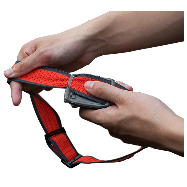 Die Stirnlampe ist mit einem breiten, bequemen Tragegurt ausgestattet. Der Riemen ist zum schnellen Abtransport des Schweißes perforiert und mit reflektierenden Elementen ausgestattet, die für gute passive Sichtbarkeit beim Laufen auf der Straße sorgen. Dank ihres Gewichts von lediglich 97 Gramm eignet sich die Fenix HL16 gut als Lauf-Stirnlampe sowie als Stirnlampe für Camping, Wandern und andere Outdoor-Aktivitäten.
