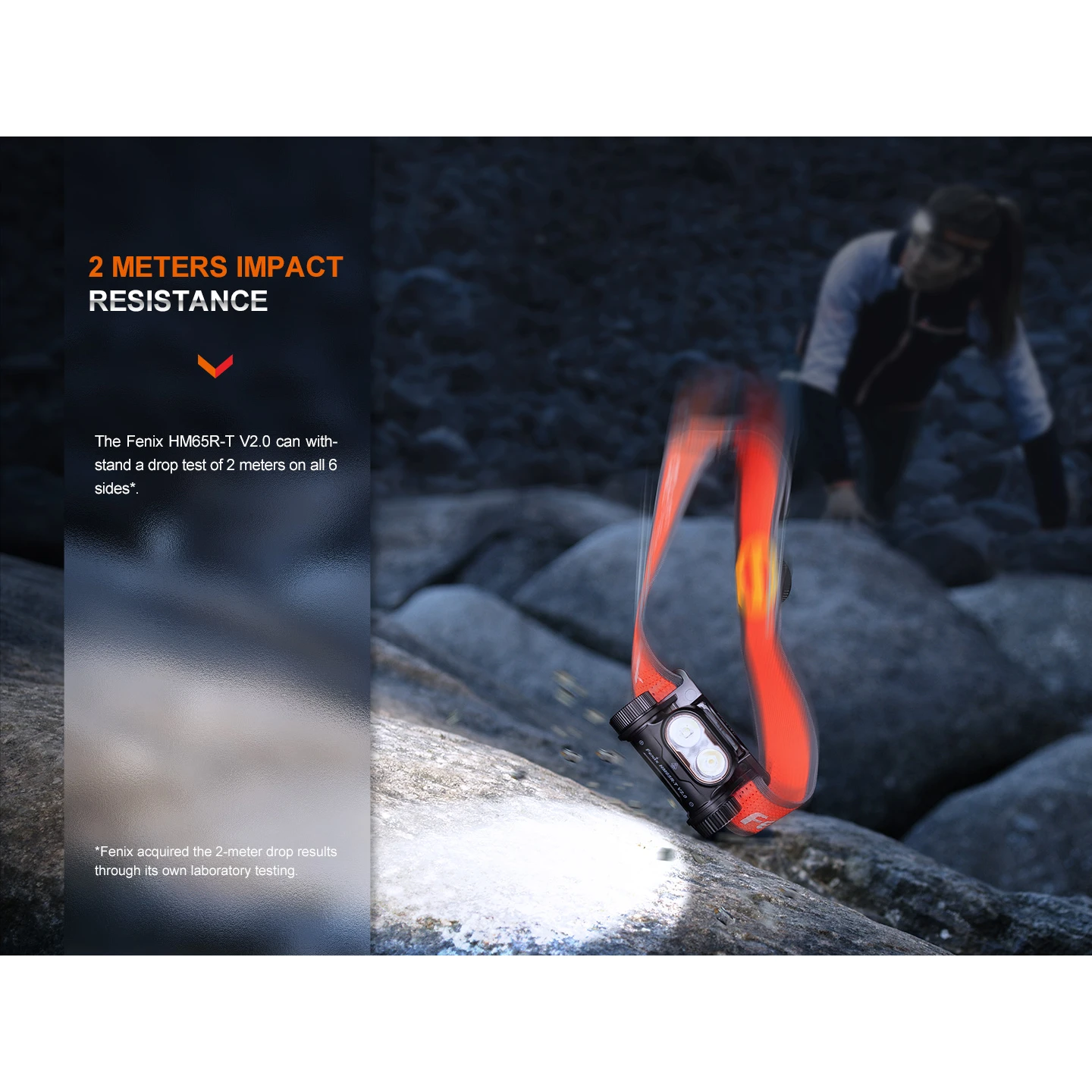 Die leistungsstarke wiederaufladbare Stirnlampe HM65R-T der Marke Fenix ist die perfekte Wahl für Trailrunning-Enthusiasten, die den Lichtstrom von 1600 Lumen mit einer Reichweite von bis zu 170 Metern bei ihren Abenteuern sicherlich zu schätzen wissen. Das Material der Stirnlampe besteht aus einer hochbelastbaren Magnesiumlegierung, welche der Stirnlampe Fallfestigkeit aus 2 Metern Höhe bzw. erhöhte Widerstandsfähigkeit gegen Wasser und Staub gemäß der IP68-Norm verleiht, sodass die Stirnlampe auch starkem Regen problemlos standhält (unter Wasser in 2 Metern Tiefe für 30 Minuten getestet).