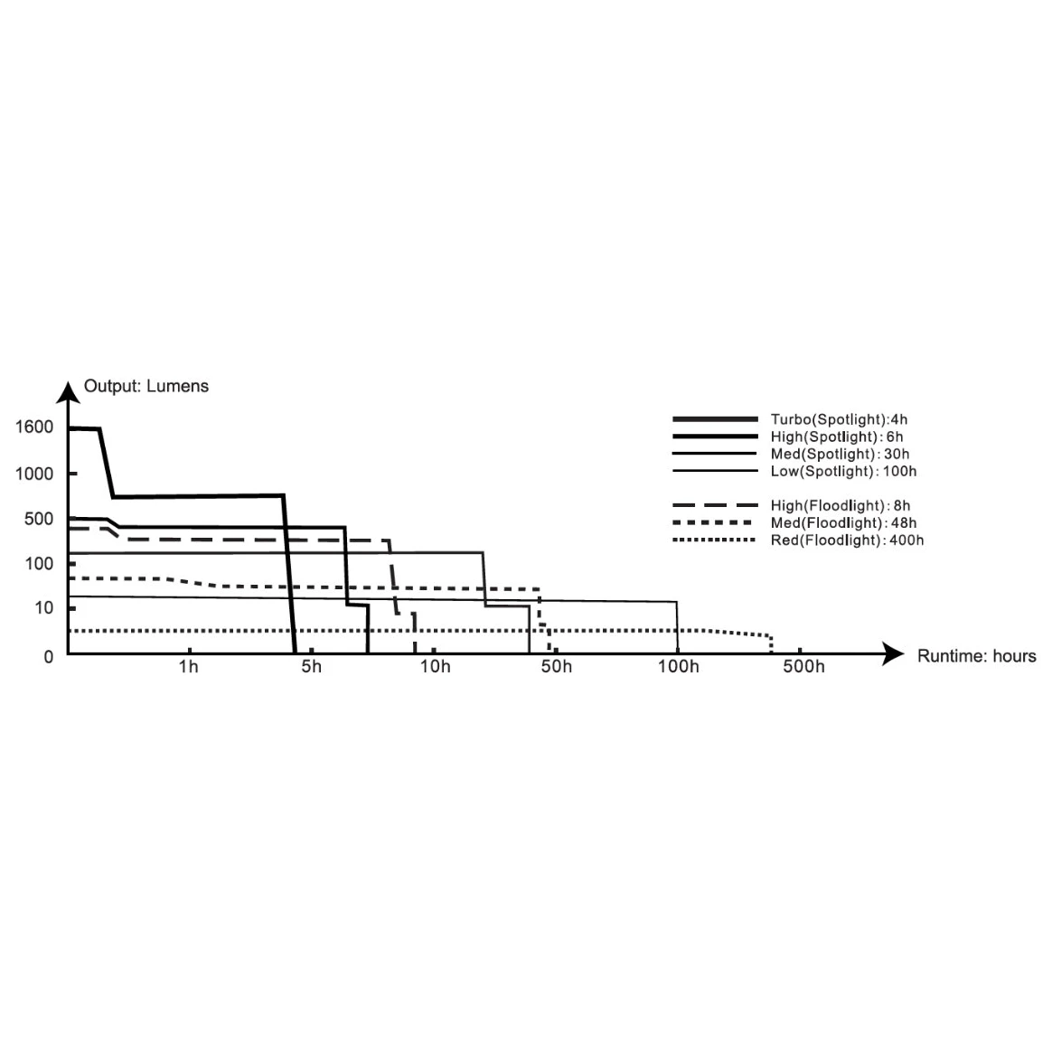 Lichtstrom und Laufzeiten werden mit dem mitgelieferten Li-Ionen 21700 Akku mit einer Kapazität von 5000 mAh gemessen.