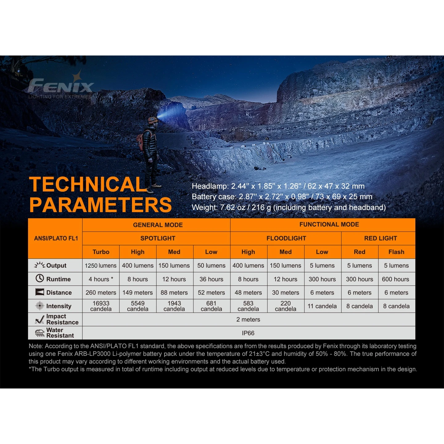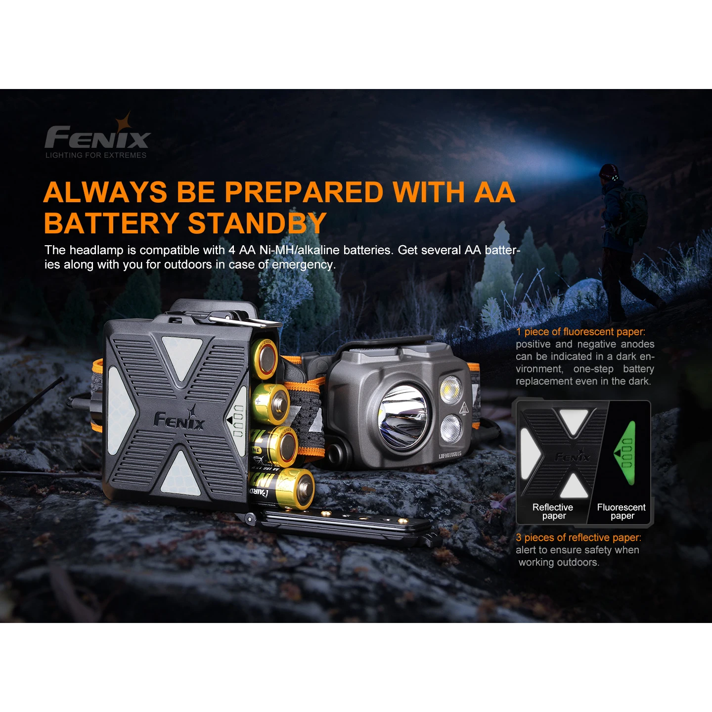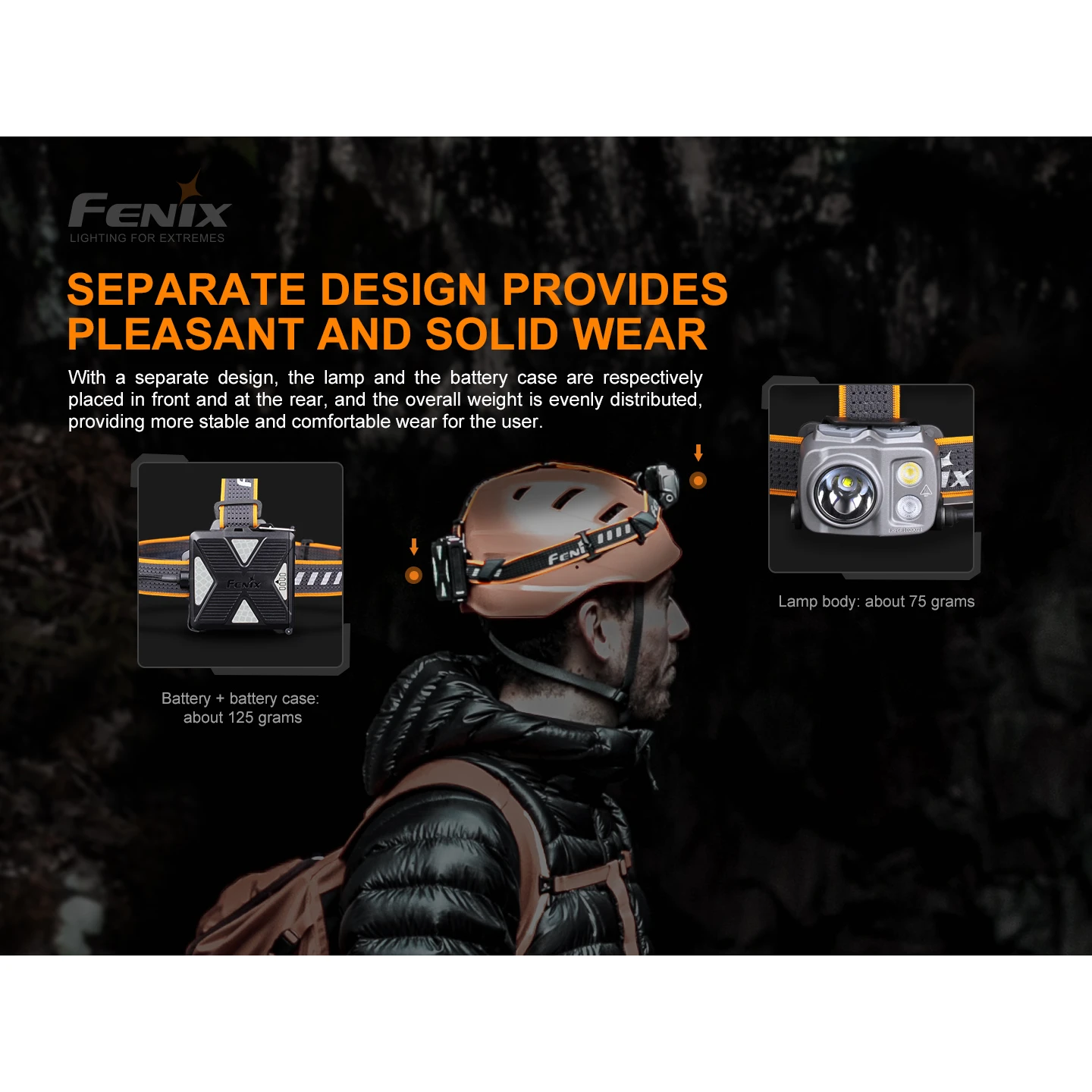 Die HP16R Hochleistungs-Akku-Stirnlampe von Fenix ist die perfekte Wahl für alle Abenteurer, die eine leistungsstarke und zuverlässige Beleuchtung suchen. Auf deinen Abenteuern wirst du den Lichtstrom von 1250lm Lumen mit einer Reichweite von bis zu 260 Metern sicherlich zu schätzen wissen. Die Stromversorgung erfolgt über einen wiederaufladbaren Li-Pol Akku mit einer Kapazität von 3000 mAh. Zur perfekten Balance befindet sich die Batterie in einem Etui im Nackenbereich und kann bei Bedarf durch vier AA-Batterien ausgetauscht werden. Die AA-Batterien sind nicht wiederaufladbar und die Leistung der Stirnlampe ist auf nur 800 Lumen begrenzt.