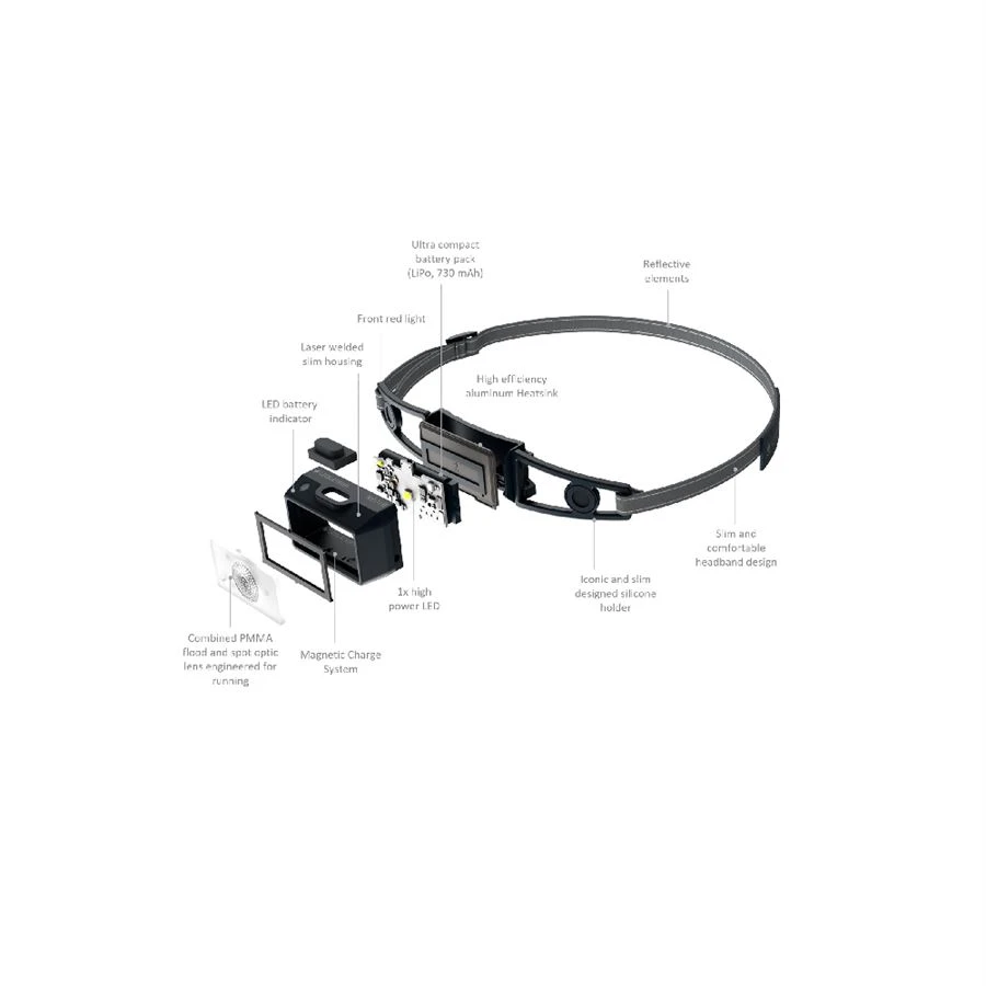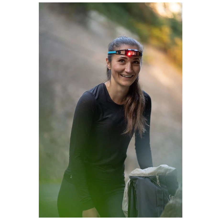 Als Sicherheitsmerkmal verfügt dieser Scheinwerfer über ein zusätzliches rotes Licht, das als Signallicht fungiert. Diese Taschenlampe lädt sich dank des magnetischen Ladesystems sehr schnell und einfach auf. Das minimalistische, reflektierende Kopfband bietet hohen Tragekomfort und sitzt perfekt auf dem Kopf.