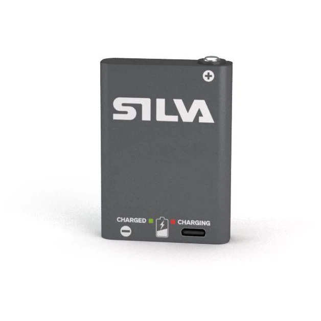 Eine weitere einzigartige Technologie ist die Hybrid-Batteriebox , die die Stromversorgung sowohl mit klassischen AAA-Batterien als auch mit einem wiederaufladbaren Akku Silva Hybrid 4,6 Wh (1,25 Ah) (im Lieferumfang enthalten) ermöglicht. Diese Box verfügt außerdem über ein rotes Sicherheitslicht, das die Sichtbarkeit erhöht, und eine 4-stufige Batterieanzeige. Die Batterie kann aus dem Kopfbügel entfernt und (mithilfe des mitgelieferten Verlängerungskabels) in der Tasche getragen werden, wo die Körperwärme hilft, die Batterielebensdauer zu verlängern. Das Aufladen des Akkus erfolgt über das mitgelieferte USB-Kabel.
