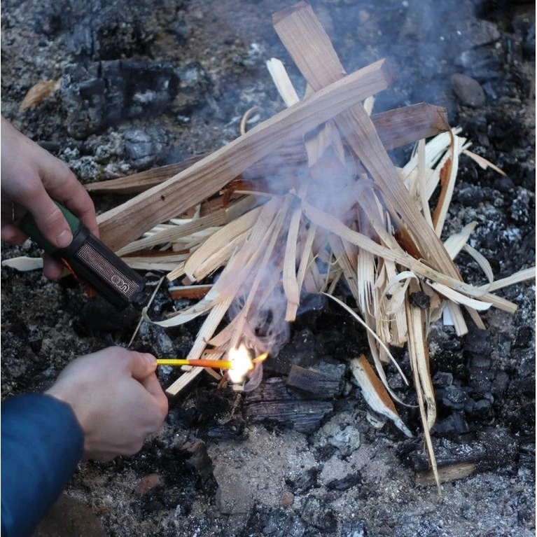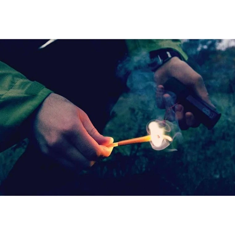 UCO Das Survival Stormproof Match Kit bietet insgesamt 12 große Streichhölzer, die unter allen natürlichen Bedingungen zünden können, sogar nach dem Eintauchen in Wasser.