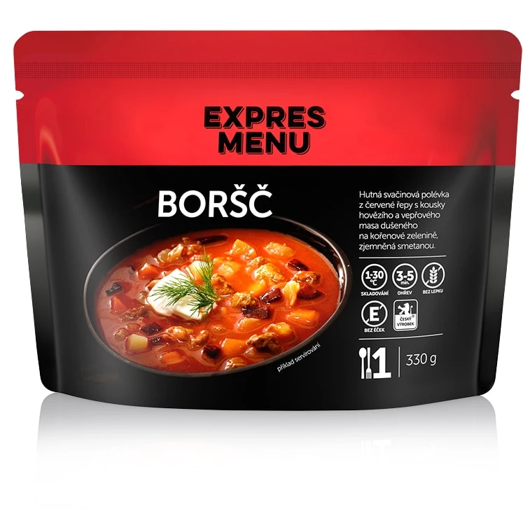 Die sterilisierten Fertiggerichte Express Menu tschechischer Herkunft sind ideal für Reisen, für Urlaube am Meer und in den Bergen, auf einer Yacht oder einem Boot, für Hüttenbewohner, für Familien mit Kindern und für Senioren oder auch als schnelle Mahlzeit zu Hause (wenn z.B. unangekündigter Besuch kommt und man ihn mit einem warmen Abendessen überraschen möchte).