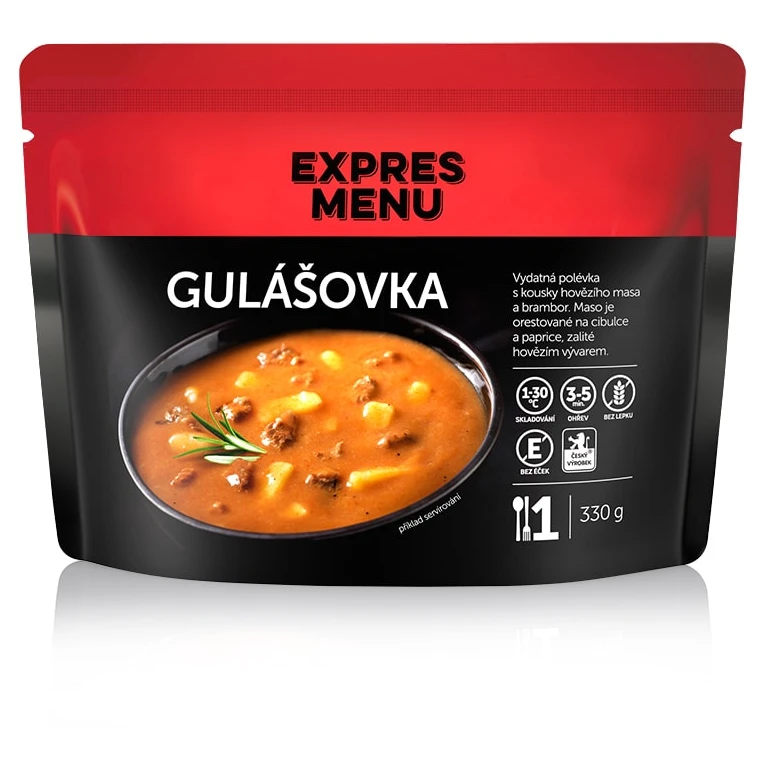 Die sterilisierten Fertiggerichte Express Menu tschechischer Herkunft sind ideal für Reisen, für Urlaube am Meer und in den Bergen, auf einer Yacht oder einem Boot, für Hüttenbewohner, für Familien mit Kindern und für Senioren oder auch als schnelle Mahlzeit zu Hause (wenn z.B. unangekündigter Besuch kommt und man ihn mit einem warmen Abendessen überraschen möchte).