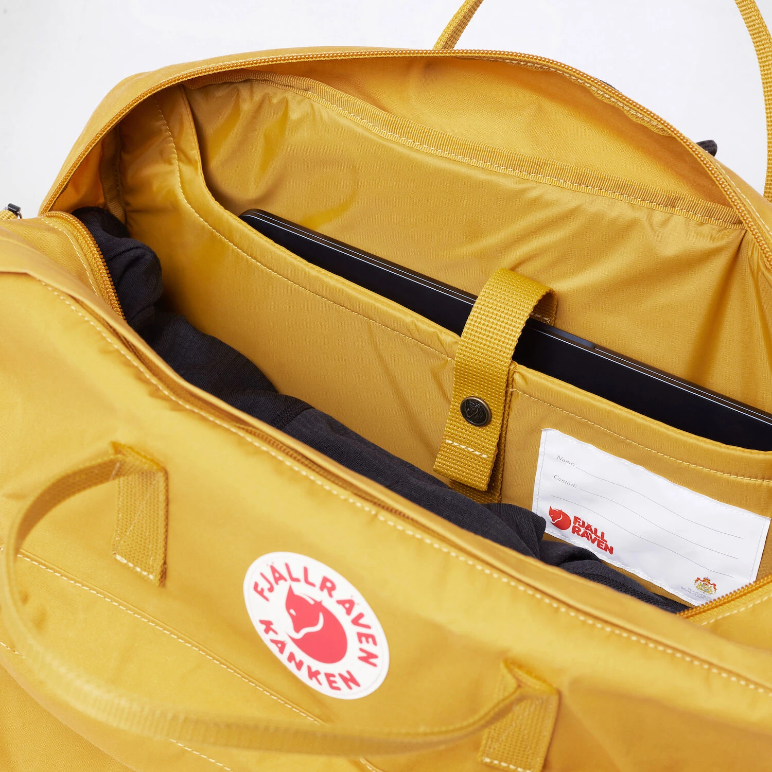 Der Kånken Weekender ist eine coole Tasche der Marke Fjällräven, die die ideale Wahl für verlängerte Wochenenden ist. Auf Reisen werden Sie sicherlich ihre Vielseitigkeit zu schätzen wissen, dank der Sie sie als klassische Handtasche, Umhängetasche oder sogar als Rucksack verwenden können. Für angenehmen Tragekomfort sorgen ein gepolstertes Rückenteil, gepolsterte Schultergurte und ein abnehmbarer Schultergurt, dessen Länge je nach Bedarf angepasst werden kann. Das Material besteht aus strapazierfähigem Vinylon-Gewebe, das durch ein Futter aus 100 % Polyamid mit einer Polyurethan-Schicht ergänzt wird.