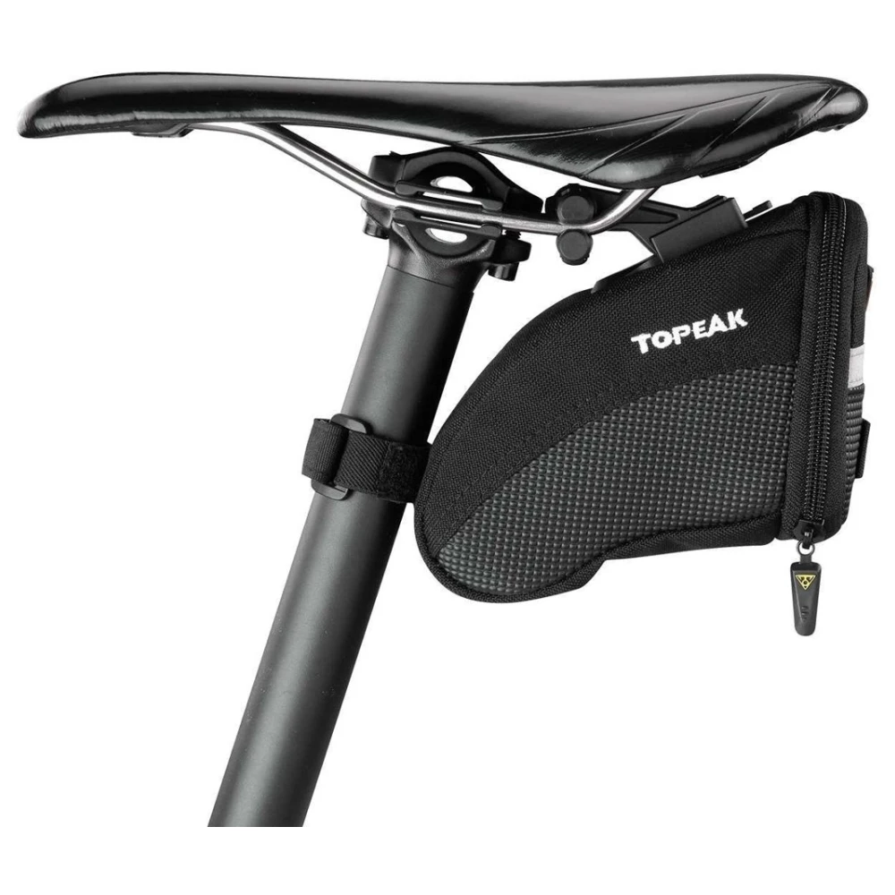 Satteltasche Topeak Aero Wedge Pack Small bietet eine aerodynamische Form, reflektierende Elemente und ein tolles Design. Die Maße der Tasche bieten problemlos Platz für einen Ersatzschlauch oder notwendiges Fahrradwerkzeug.