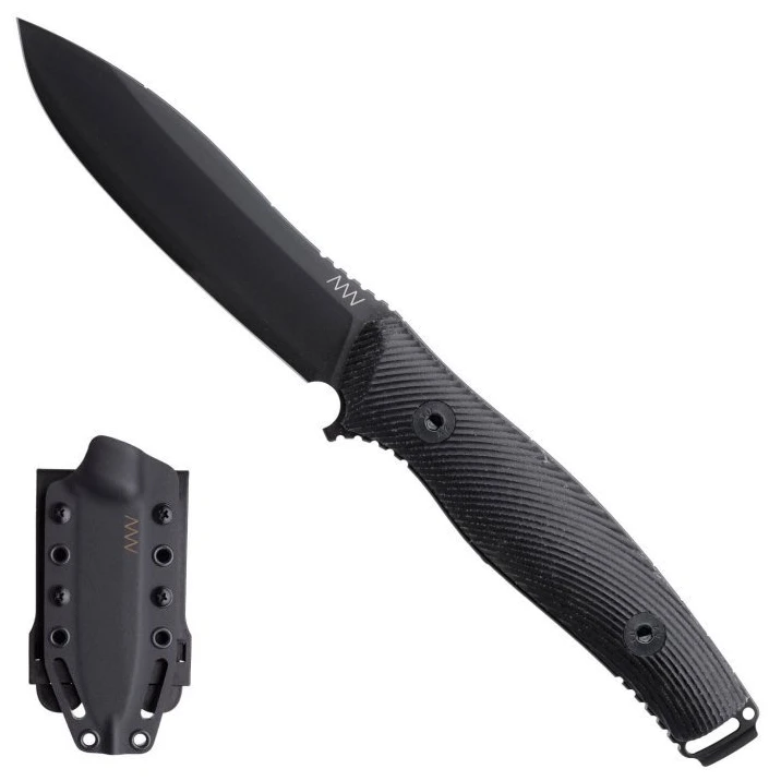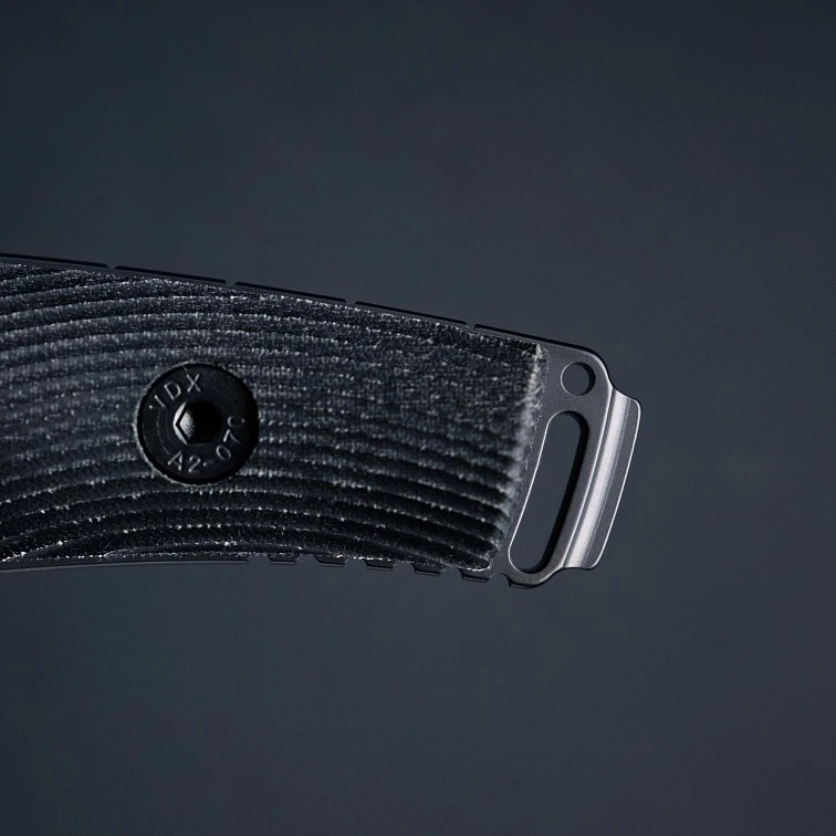 Im Lieferumfang ist eine Scheide aus Kydex-Material enthalten, das aufgrund seines geringen Gewichts und seiner Robustheit in der Flugzeugindustrie verwendet wird. Die Scheide ist selbstarretierend, so dass das Messer nicht von selbst herausfällt. Zur einfachen Reinigung und Wartung des Gehäuses verfügt das Gehäuse über einen großzügigen Abflusskanal.