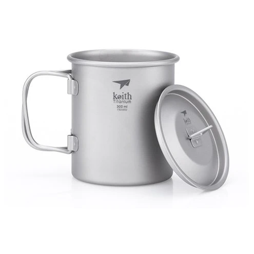 Der Single-Wall Titanium Mug 300 ml der Marke Keith Titanium, hergestellt aus einem Material, das sehr widerstandsfähig gegen Beschädigungen und extreme Temperaturen ist, ergänzt Ihr Reisekochgeschirr-Set perfekt. Titan ist außerdem ein sehr leichtes Material, was Sie bei längeren Wanderungen zu schätzen wissen werden. Er verfügt über klappbare Tragegriffe, sodass er in Ihrem Gepäck nicht unnötig Platz einnimmt. Zum Becher gehört außerdem ein praktischer Deckel, der die Siedezeit der Flüssigkeit verkürzt und diese länger warm hält.