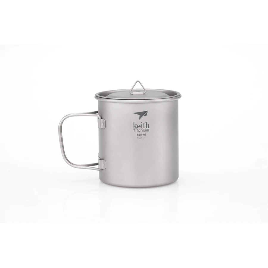 Der Single-Wall Titanium Mug 550 ml der Marke Keith Titanium, hergestellt aus einem Material, das sehr widerstandsfähig gegen Beschädigungen und extreme Temperaturen ist, ergänzt Ihr Reisekochgeschirr-Set perfekt. Titan ist außerdem ein sehr leichtes Material, was Sie bei längeren Wanderungen zu schätzen wissen werden. Er verfügt über klappbare Tragegriffe, sodass er in Ihrem Gepäck nicht unnötig Platz einnimmt. Zum Becher gehört außerdem ein praktischer Deckel, der die Siedezeit der Flüssigkeit verkürzt und diese länger warm hält.