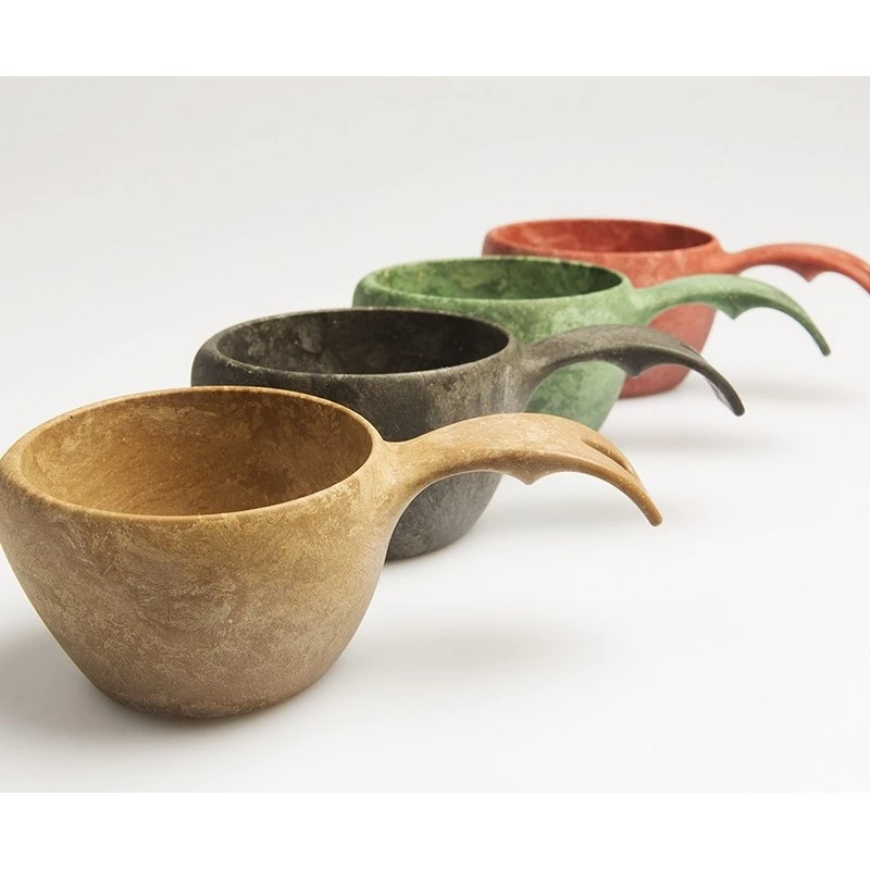 Kupilka Produkte bestehen aus Biomaterial. Der thermoplastische Verbundstoff besteht zu 50 % aus Kiefernholz und zu 50 % aus Kunststoff. Im Vergleich zu Kunststoff weist dieses Material aufgrund seiner dichten Verbundstruktur eine höhere Hitzebeständigkeit und längere Lebensdauer auf. Im Gegensatz zu Kunststoff ist es gravierbar. Vergleicht man dieses Material mit Holz, fallen einem sofort die großen Vorteile auf. Pflegeleicht, geruchsneutral und unempfindlich gegenüber Feuchtigkeit.