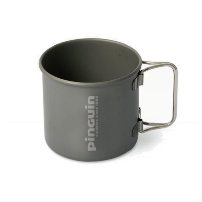 Becher Pinguin Der Alu-Becher mit einem Nutzvolumen von 350 ml lässt sich für alle erdenklichen Formen von Outdoor-Aktivitäten verwenden. Es besteht aus hartanodisiertem (eloxiertem) Aluminium, welches sich durch sein geringes Gewicht, seine Langlebigkeit und einfache Reinigung auszeichnet. Ein Paar klappbare Tragegriffe sorgen für bequemes Halten und reduzieren den Platzbedarf im Rucksack.