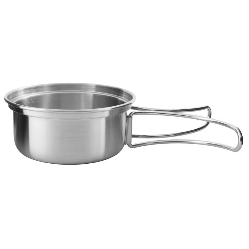 Einwandiger Edelstahl Becher Henkelbecher 850 Set der Firma Tatonka mit einem Deckel mit einem Fassungsvermögen von 850 ml mit klappbaren Henkeln und einer Maßskala.