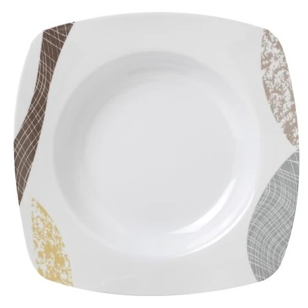 Ein unkonventioneller quadratischer Teller Brunner Assiette-Teller mit Design-Elementen, der hauptsächlich für das Abendessenkonzipiert ist. Dies sind die Abmessungen 23 x 23 cm mit BPA-freier Behandlung. Es verfügt außerdem über eine Anti-Rutsch-Behandlung.