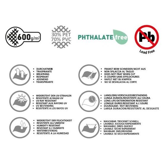 - Material: 70% PVC, 30% PET