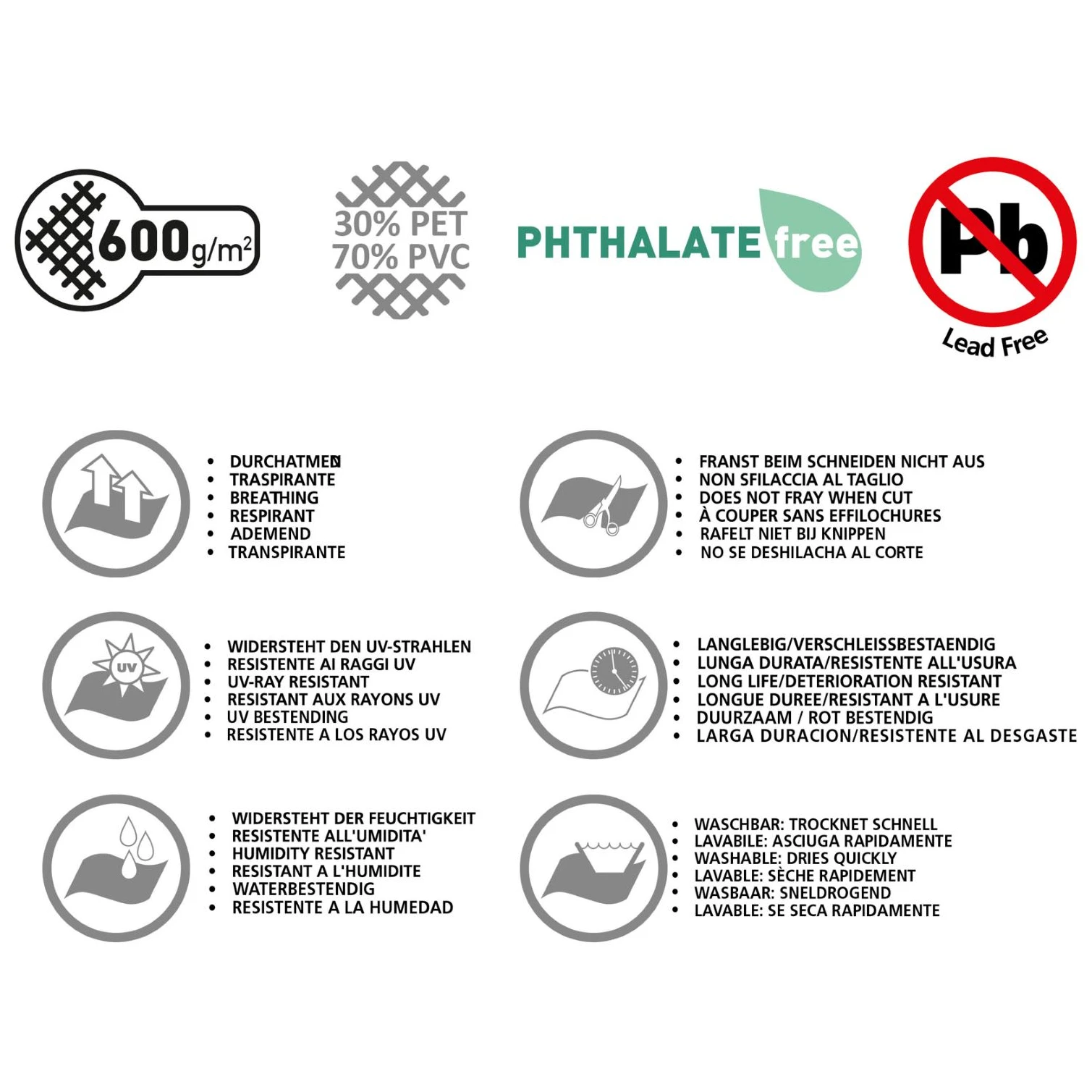 - Material: 70% PVC, 30% PET