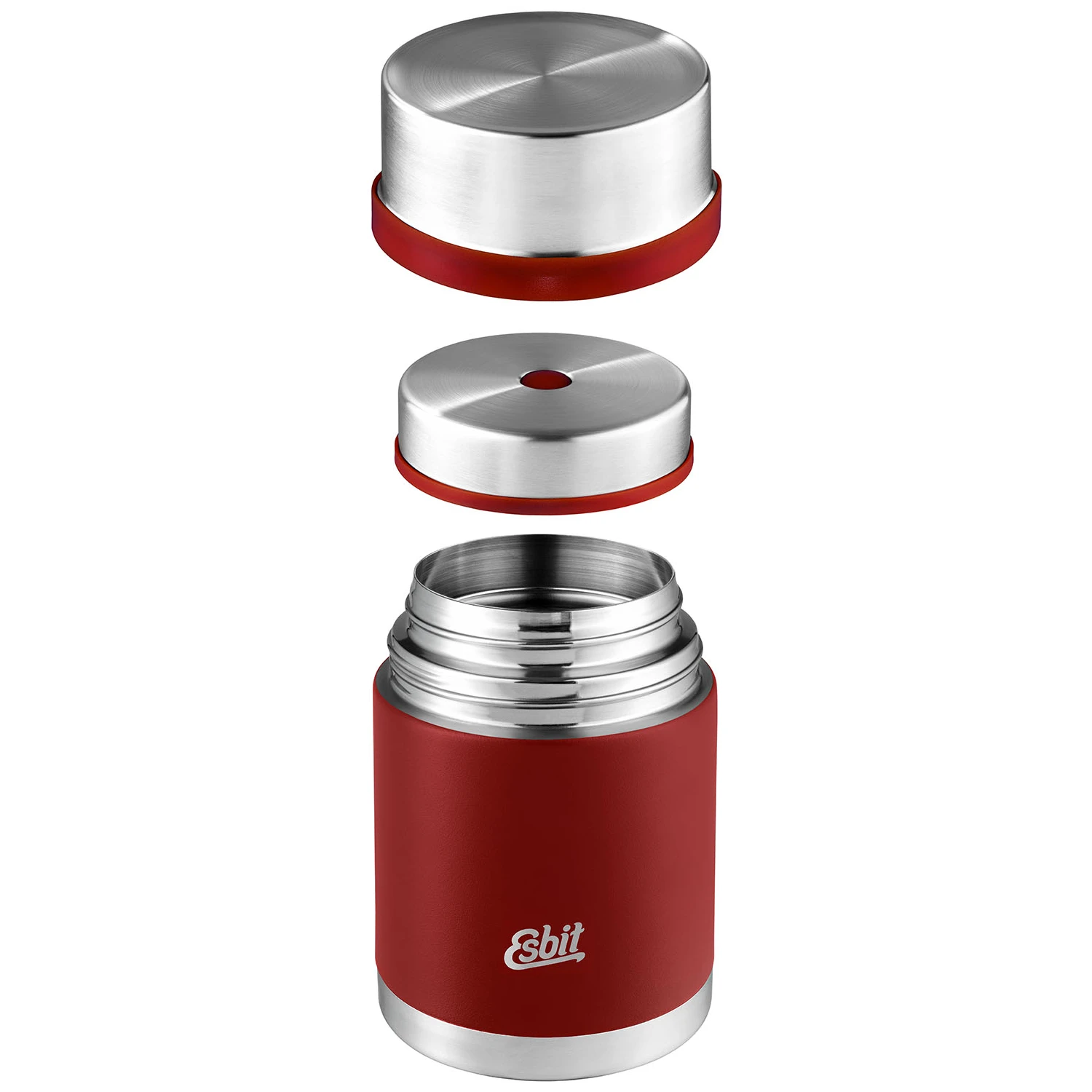 Die Sculptor 0,5-l-Thermoskanne für Speisen von Esbit besteht aus hochwertigem Edelstahl , der eine stabile Konstruktion bietet, wobei Sie den Deckel als Schüssel verwenden können. Die Außenseite der Thermoskanne ist mit einer speziellen matten Farbe mit einer rutschfesten Oberfläche überzogen, die ein Herunterfallen verhindert. Die innere Schicht ist mit einer speziellen Schicht überzogen, die die Isoliereigenschaften der Thermoskanne verbessert und zudem antibakteriell ist. Die Thermoskanne verfügt außerdem über ein Sicherheitsventil , das für einen Druckausgleich im Inneren sorgt und so unangenehme Verbrühungen verhindert.