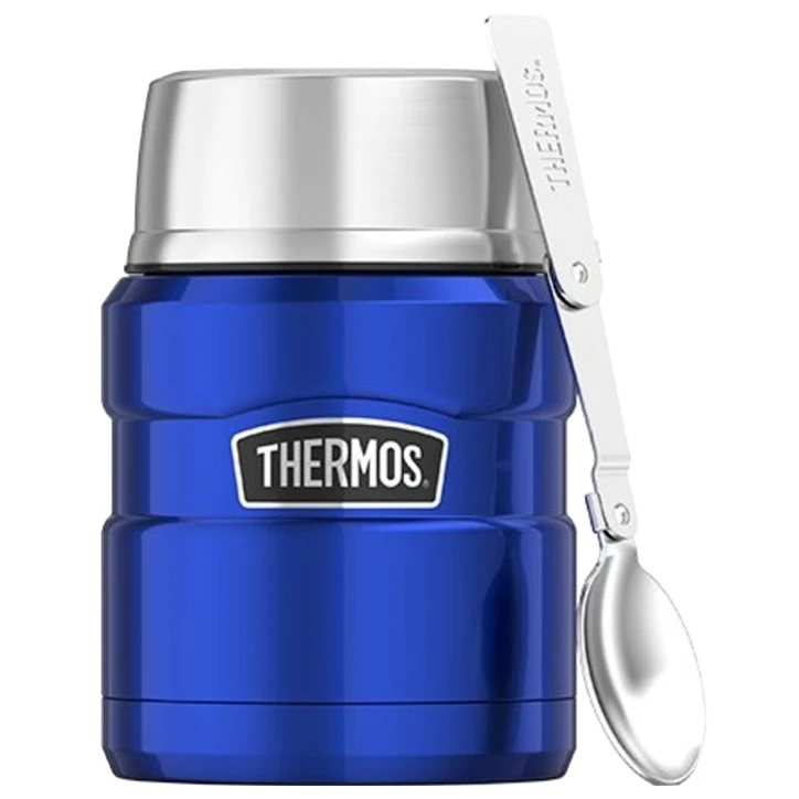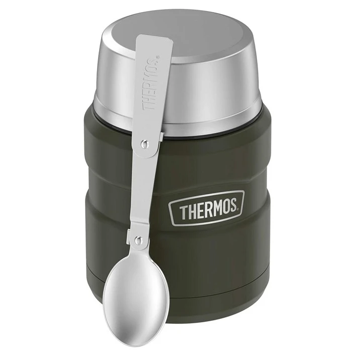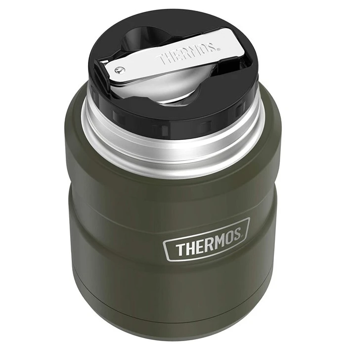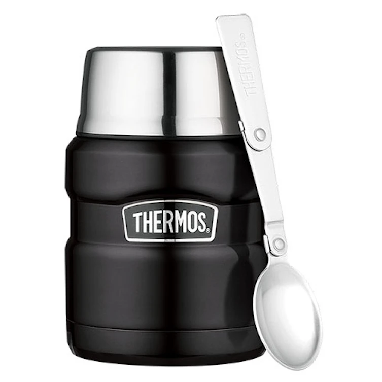 Die vakuumisolierte Thermos-Speiseflasche aus Edelstahl mit klappbarem Style-Löffel der Marke Thermos erleichtert das Schöpfen von Speisen direkt aus der Thermoskanne, sorgt für ein leichtes Befüllen und erleichtert die Pflege. Der Formverschluss hingegen erleichtert das Öffnen und Schließen. Der Klapplöffel ist mit zwei Gelenken ausgestattet, dank denen Sie ihn ganz einfach zusammenfalten und in die vorbereitete Öffnung in der Kappe einführen können.