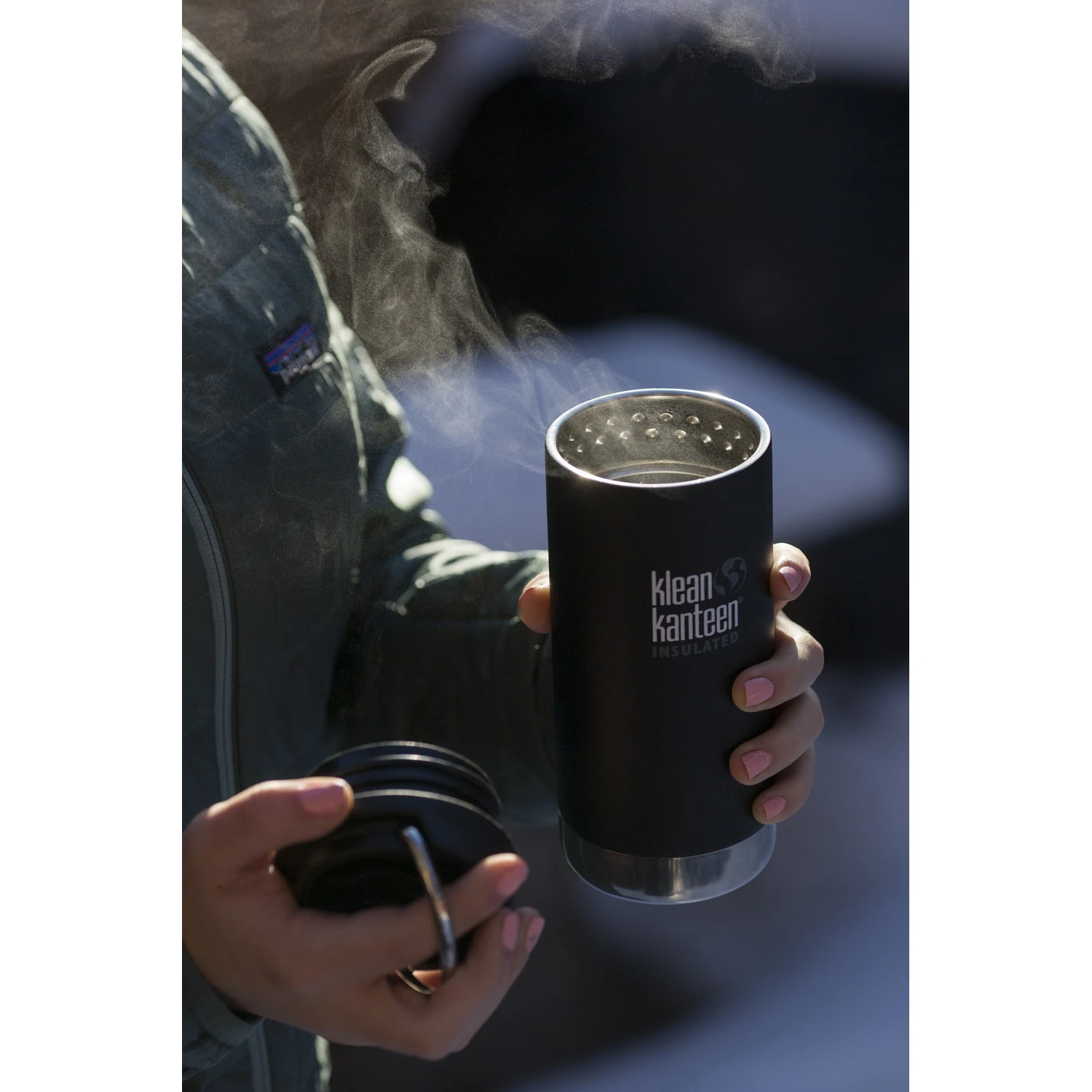 Mit der Café Cap wird aus dieser Thermoskanne ein Becher für Kaffee oder andere Getränke. Es ist auslaufsicher, hat ein flaches Design und einen Schwenkgriff für einfaches Tragen. Der Deckel lässt sich leicht abschrauben und kann in der Spülmaschine gereinigt werden. Der Verschluss ist nur mit TKWide-Flaschen Klean Kanteen kompatibel.