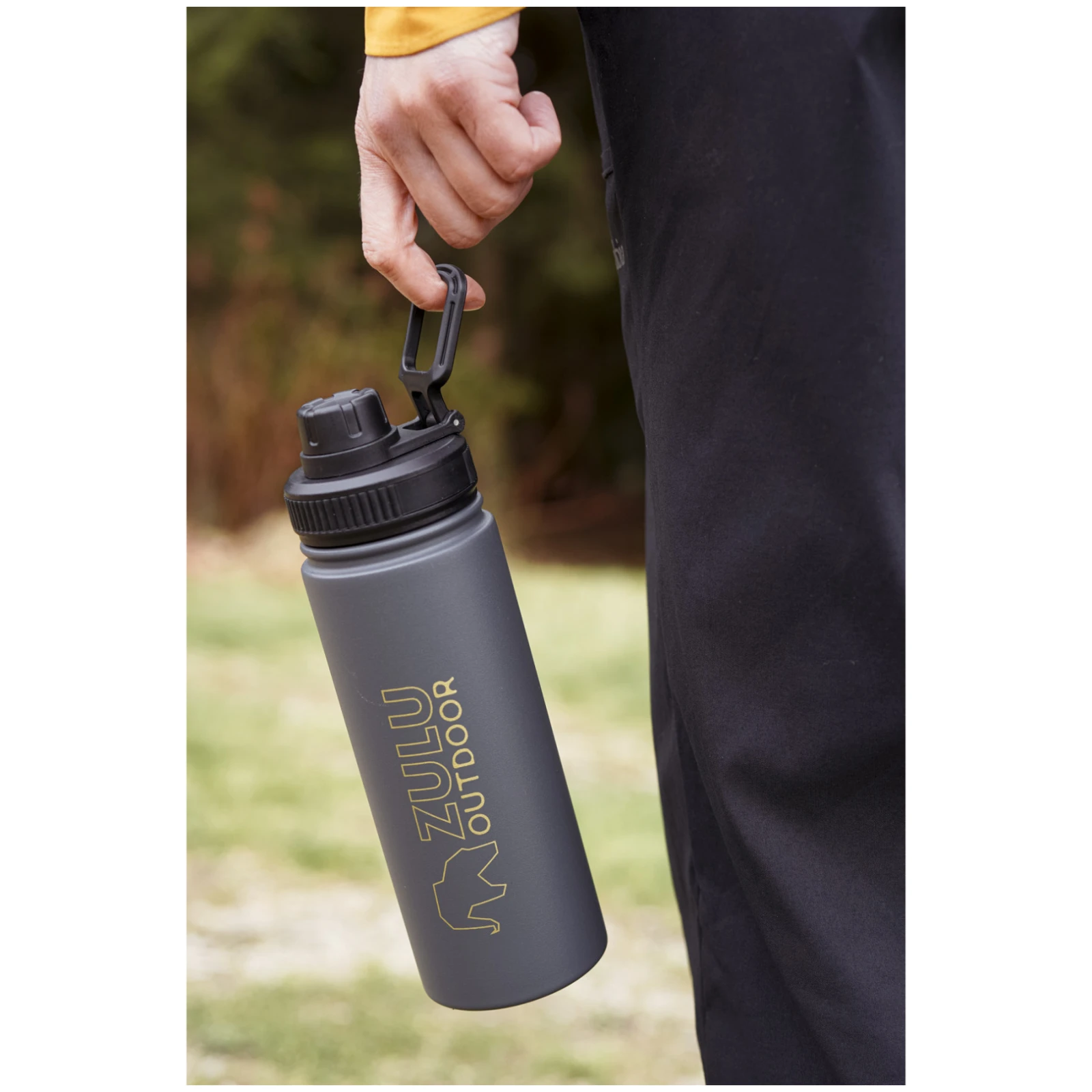 Mit der Vakuum- Thermoskanne Zulu Vacuum Sport 500 halten Sie Ihre Getränke kalt oder warm. Die wärmeisolierende Eigenschaft wird durch das Vakuum zwischen den beiden Schalen der Thermoskanne gewährleistet. Der Sportverschluss ermöglicht einfaches und schnelles Trinken unterwegs, beim Laufen oder Trekking. Der Hals ist breit genug, um Eiswürfel einzuwerfen oder eine Bürste zum Reinigen zu verwenden.