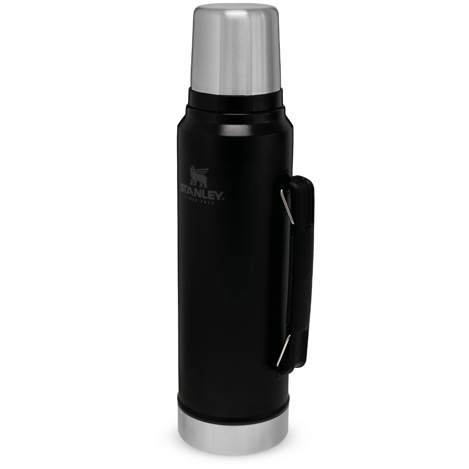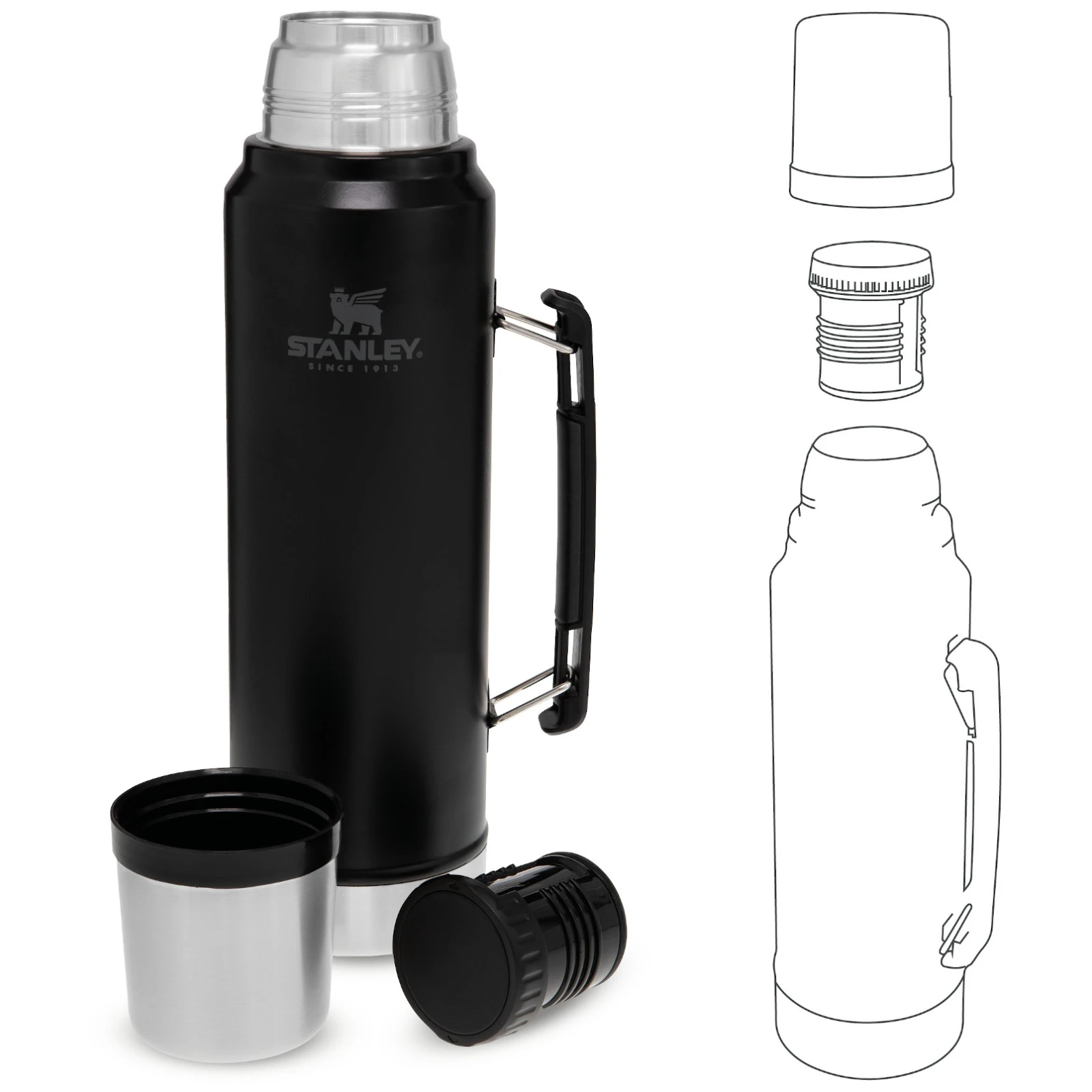 Thermoskanne Stanley Classic-Serie Legendary Classic mit einem Fassungsvermögen von 1 l ist aus 18/8 Edelstahl gefertigt. Es kann seinen Inhalt bis zu 24 Stundenwarm/kalt halten. Die Thermoskanne ist doppelwandig mit Vakuumisolierung und zudem BPA-frei.