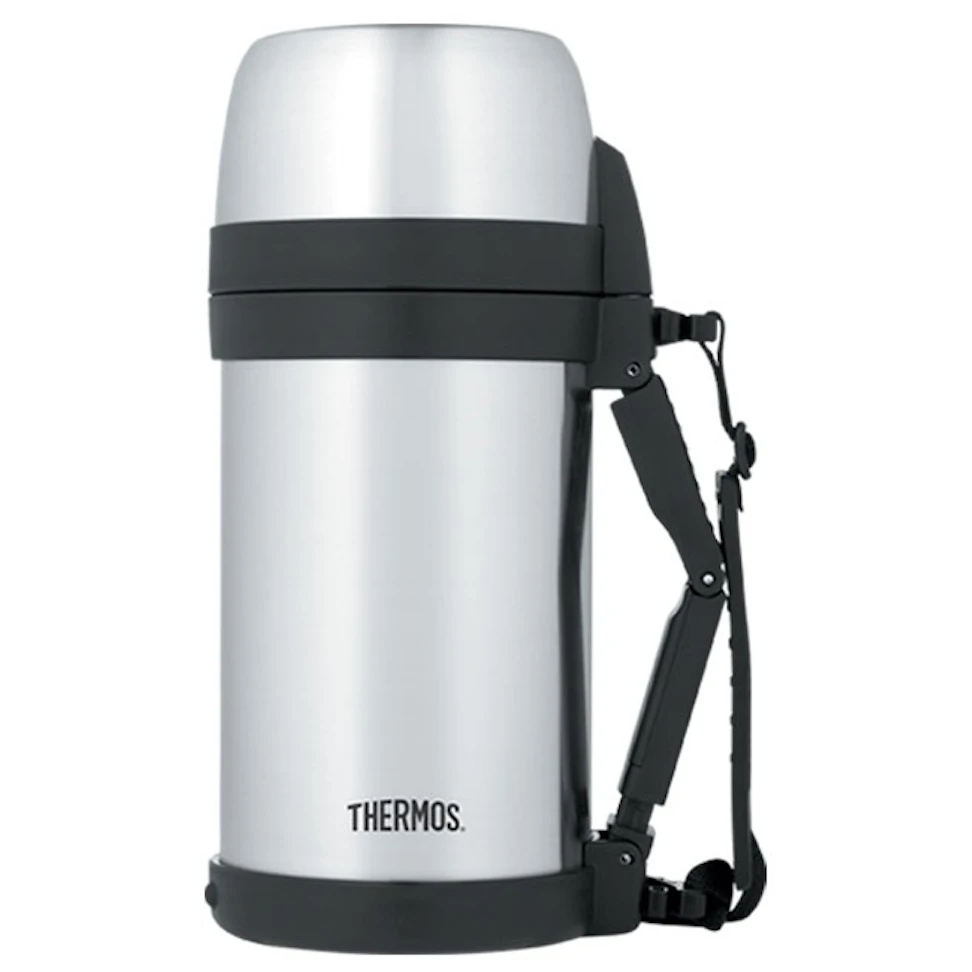 Die universelle Edelstahl-Vakuumisolierte Thermoskanne Mountain FDH von Thermos ist eine ideale Wahl für Outdoor-Aktivitäten. Es besteht aus einem Edelstahlbecher, einem zweiten Becher, einer Kappe, einem abnehmbaren Tragegurt und einem Teleskopgriff. Der weite Hals (7 cm) ist praktisch zum Füttern und gründlichen Waschen. Der Thermosverschluss ist mit einem Flip-Top-Verschluss mit Sicherheitsverschluss ausgestattet. Das Öffnen und Schließen ist mit einer Hand möglich. Der Verschluss gewährleistet zudem einen gleichmäßigen Ausfluss des Getränks, selbst wenn die Thermoskanne stark geneigt ist.