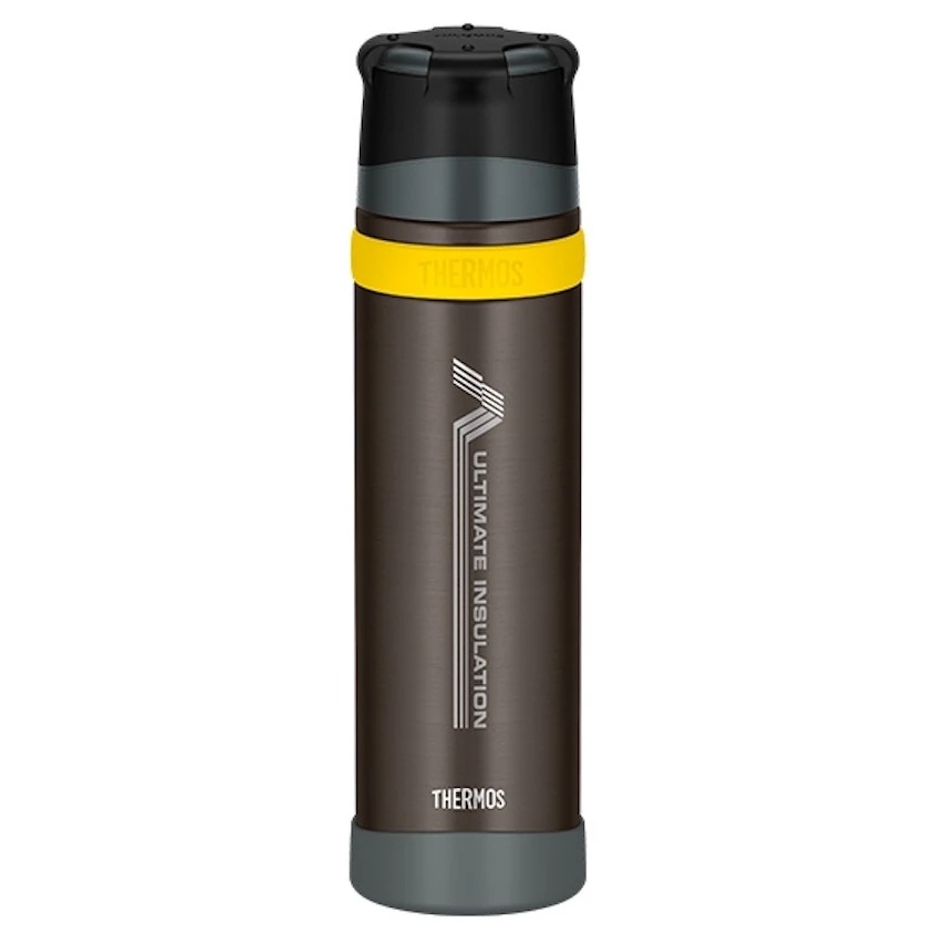 Die doppelwandige vakuumisolierte Edelstahl-Thermoskanne Mountain FFX von Thermos ist weltweit führend im Bereich der Outdoor-Thermoskannen. Dieses Modell ist für extremste Bedingungen konzipiert und verfügt daher über Funktionen, die den Anforderungen an eine Flasche für die Bergwelt entsprechen, wie z. B. einfaches Öffnen und Schließen, Stoßfestigkeit, geringes Gewicht, Kompaktheit und natürlich hohe Isolierleistung. Dank Letzterem kann die Thermoskanne das Getränk sehr lange warm halten.