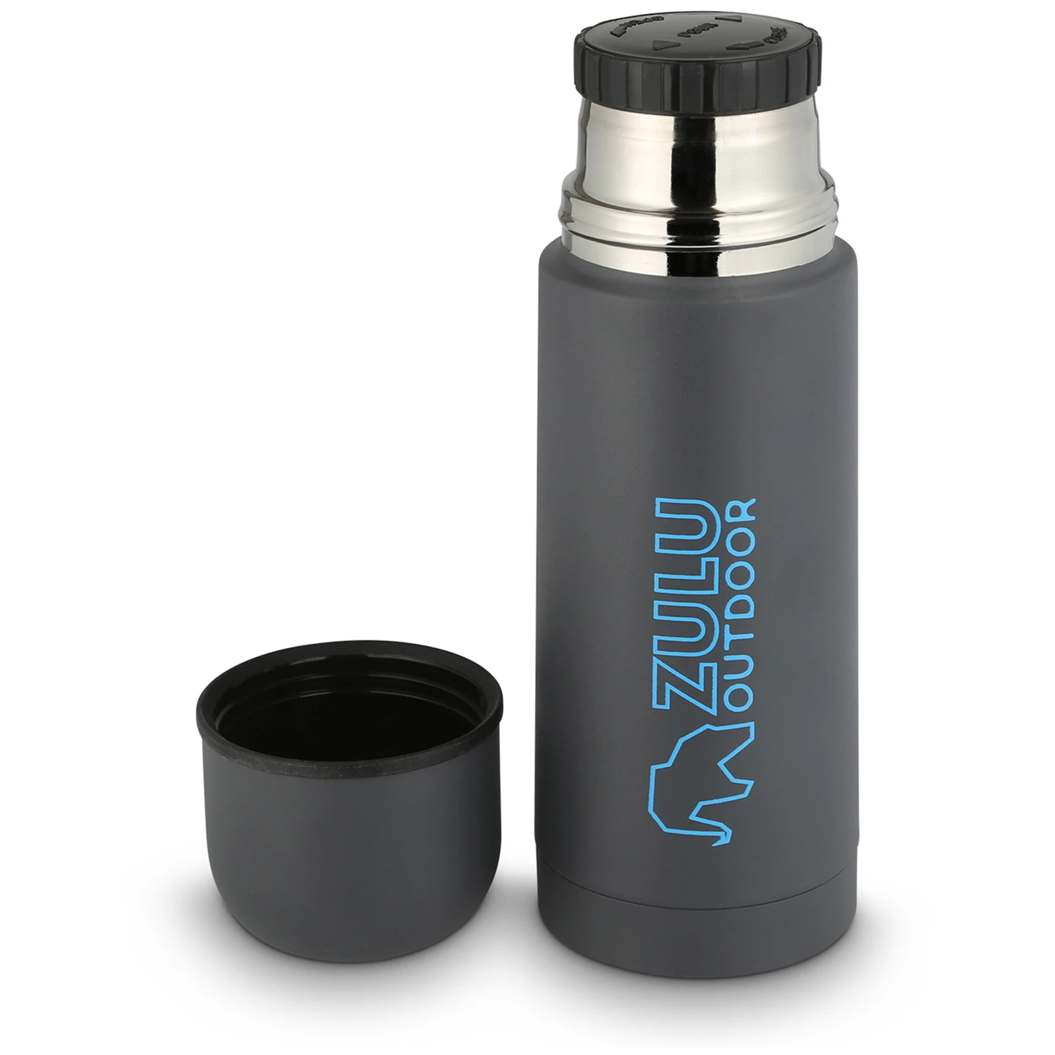 Mit der Vakuum- Thermoskanne Zulu für den Außenbereich können Sie Ihre Getränke kalt oder warm halten. Die wärmeisolierende Eigenschaft wird durch das Vakuum zwischen den beiden Schalen der Thermoskanne gewährleistet. Zur Thermoskanne gehört ein Edelstahlbecher, der mit einem Kunststoffeinsatz ausgestattet und mit einem Kunststoffrand ausgekleidet ist.