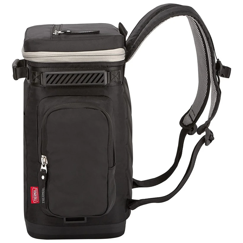 Spezieller Icon 10 l Thermo-Rucksack der Marke Thermos zum täglichen Transportieren und Aufbewahren von kalten Getränken. Der Thermo-Rucksack verfügt über hervorragende Isoliereigenschaften dank der IsoTec™-Isolierung, die auf einer mehrschichtigen Isolierkonstruktion basiert. Es besteht aus langlebigem und sehr leichtem High-Density-Schaumstoff (25 mm dicker geschlossenzelliger Schaumstoff). Diese Schicht befindet sich zwischen einem strapazierfähigen Gewebe, das die Außenschicht bildet, und einer inneren wasserdichten, heißversiegelten (nahtlosen) TPU-Schicht.