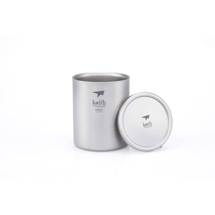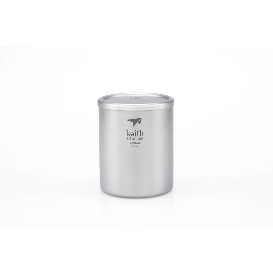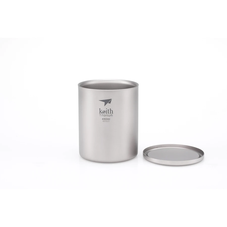 Titan-Thermosbecher Der Doppelwandige Titanbecher 450 ml der Marke Keith Titanium hält Ihr Getränk deutlich länger heiß als ein klassischer einwandiger Becher. Es besteht aus hochwertigem Titan ohne Basis- oder Oberflächenbehandlung und ist daher geschmacks- und geruchsneutral, ungiftig und spülmaschinenfest. Ursprünglich für Rucksackreisen, Camping und Reisen konzipiert, ist es auch ein toller Begleiter für Picknicks oder zur Getränkezubereitung zu Hause oder im Büro. Der Deckel schützt Ihr Getränk vor Staub und Schmutz und hilft, es warm oder kalt zu halten.