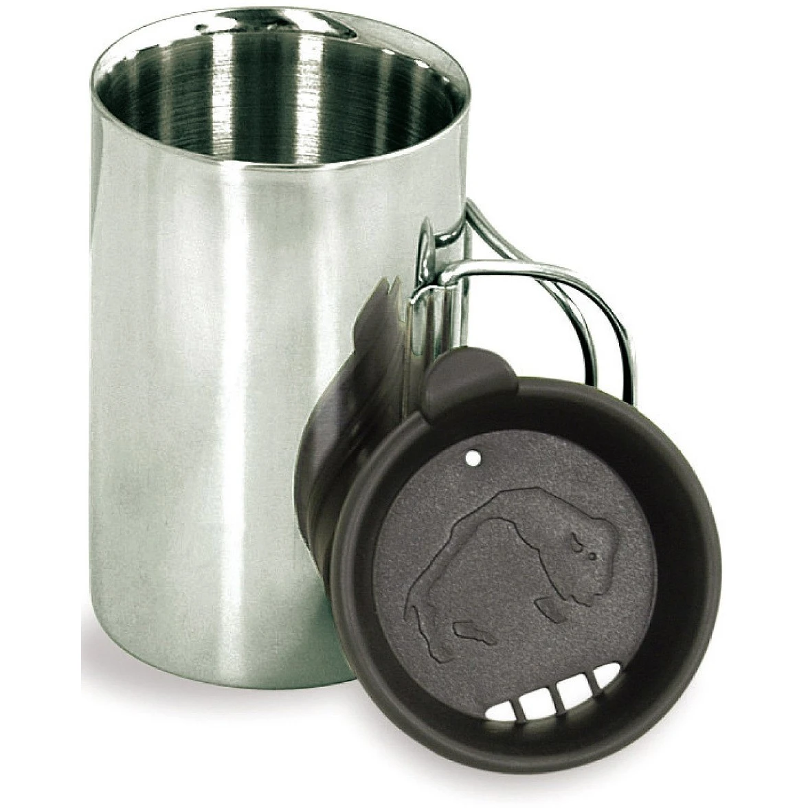 Der praktische Edelstahl- Becher Tatonka Thermo 350 ist ein toller Begleiter für unterwegs. Durch das Edelstahlmaterial bleibt Ihr Getränk länger warm und Sie verbrennen sich nicht. Der Kunststoffdeckel verhindert das Auslaufen von Flüssigkeit und erleichtert zudem das Trinken aus der Tasse. Dank der klappbaren Henkel lässt sich der Becher bequem überallhin mitnehmen.