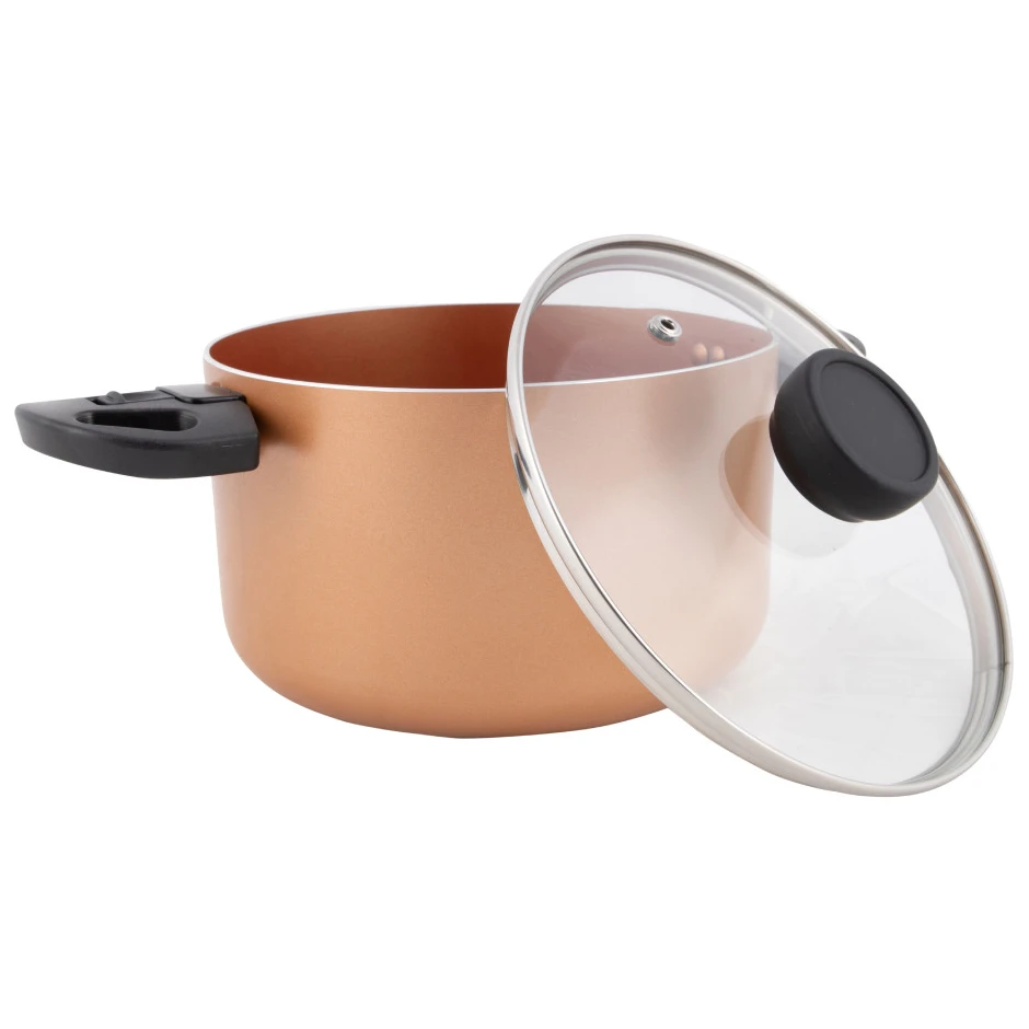 Zweiteiliges Slauson Topfset der Marke Bo-Camp mit Keramikoberfläche, hitzebeständigen Klappgriffen und Glasdeckel. Ideal für alle Herdarten.