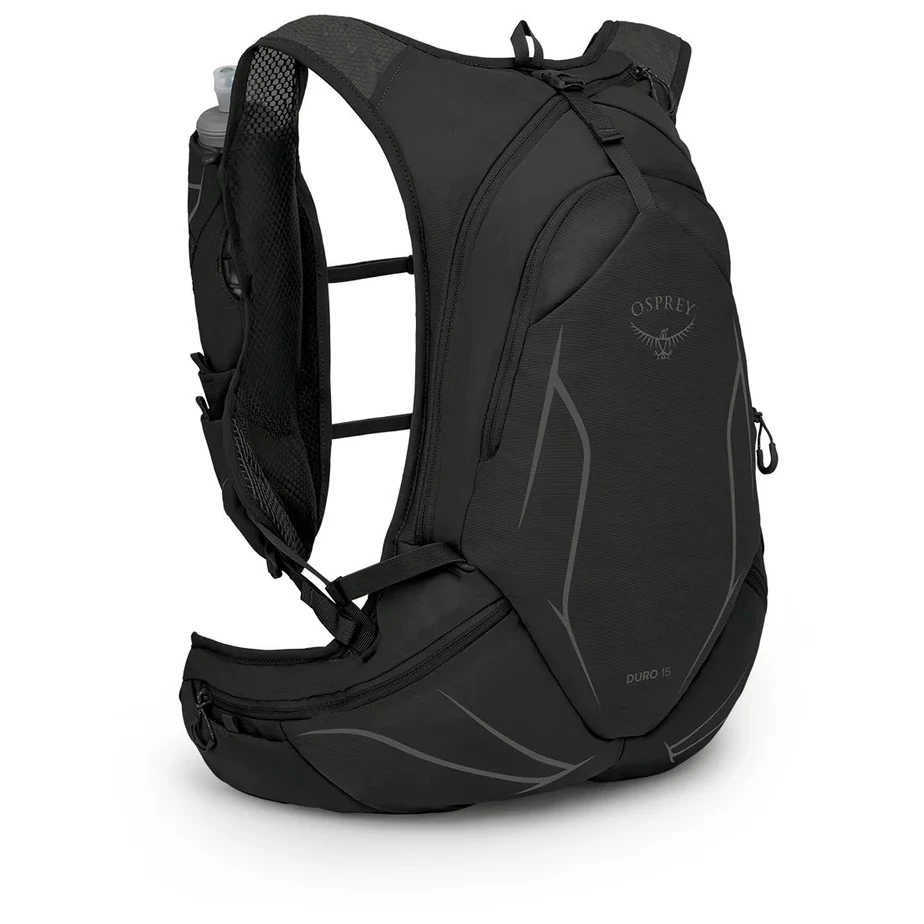 Laufrucksack für Herren Osprey Der Duro 15 ist ein Laufrucksack mit großem Fassungsvermögen für Langstreckenläufer, die mehr Platz für Wasser, Kleidung, Nahrung und Ausrüstung benötigen.