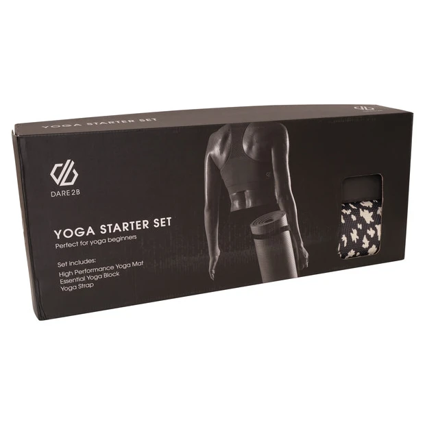 Das Yoga-Starter-Set Dare 2b beinhaltet eine Yogamatte, einen Block und einen Anti-Rutsch-Gurt.