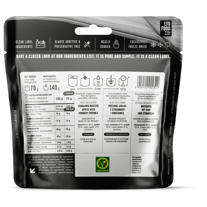 Das polnische Unternehmen Lyo Food beliefert Geschäfte mit hochwertiger gefriergetrockneter Nahrung seit 1998. Die Idee ist, Bergsteiger, Wanderer, Segler, Extremsportler oder Reisende mit einer hochwertigen Nahrung zu versorgen, die mit allen wichtigen Makronährstoffen vollgepackt ist. Im Jahr 2013 erhielt Lyo Foods den Gold Award bei den Industry Awards, eine der renommiertesten Auszeichnungen, die nur an Produkte von höchster Qualität mit einer innovativen Idee vergeben wird. Die Speisen von Lyo Foods sind zu 100 % aus frischen und natürlichen Zutaten gemacht, von denen das Unternehmen einige für sich selbst anbaut.