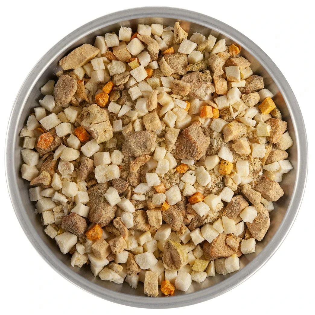 - Geringes Gewicht – Beim Gefriertrocknungsprozess werden 98 % des Feuchtigkeitsgehaltsentfernt, was zu einer deutlichen Gewichtsreduzierung führt. Das Futter ist leicht und kompakt verpackt.
