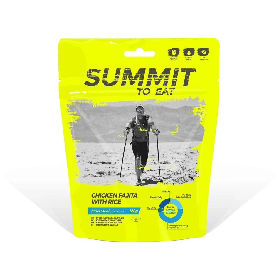 Chicken Fajita mit Reis in der Großpackung der Marke Summit to Eat ist eine leckere und praktische Reisemahlzeit. Geeignet für Liebhaber der mexikanischen Küche.