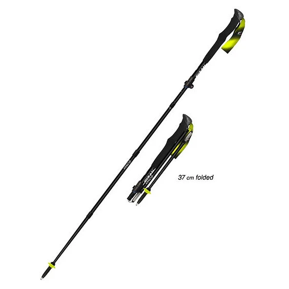 Die Aluminiumkonstruktion bietet eine gute Kombination aus geringem Gewicht und Widerstandsfähigkeit. Die Stöcke sind teleskopisch verstellbar im Bereich von 112 bis 135 cm, sodass Sie ihre Länge leicht an das Gelände und Ihre Körpergröße anpassen können. Nach dem Zusammenklappen messen sie nur 37 cm, was sie zu einer sehr kompakten Ausrüstung macht, die auch in kleinere Rucksäcke passt.