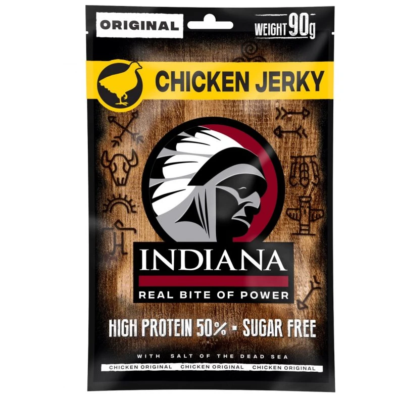 Indiana beef Jerky ist ein Trockenfleisch, das nach alten indianischen Rezepturen mit neuesten Technologien hergestellt und an die Geschmacksknospen der Europäer angepasst wird. Indiana beef Jerky ist ein nicht fettiger, gesunder Snack, der reich an Proteinen ist und einen niedrigen Cholesteringehalt sowie einen sehr niedrigen Fettgehalt hat. Indiana beef Jerky enthält eine angeblich gesündere Art von Salz, K-Salz (KCl statt NaCl), das den menschlichen Organismus nicht negativ mit überschüssigem Natrium belastet.