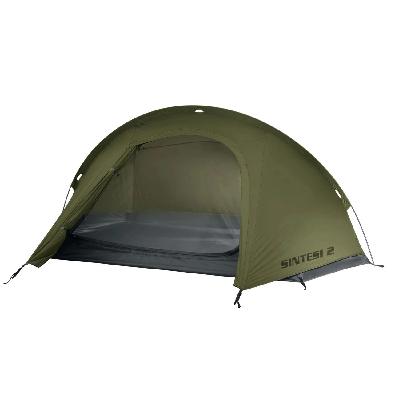 Das ultraleichte Einwand- Zelt Ferrino Sintesi 2 ist für anspruchsvolle Benutzer konzipiert, die das Gewicht des verpackten Zeltes so gering wie möglich halten möchten. Die Duraluminiumstruktur besteht aus einem einzigen Stab, was den Aufbau deutlich beschleunigt und erleichtert. Das Zelt und die Bodenplane haben eine Wassersäule von 3.000 mm, die Nähte sind verschweißt.