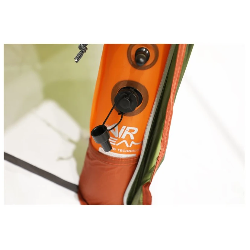 Die aufblasbare AirBeam®-Struktur sorgt zusammen mit TBS® Pro für eine stabile und langlebige Struktur. Das Tropikobesteht aus einem Protex 15.SRN-Außenzelt mit einer Wassersäule von 3000 mm und das Innenzelt ist ein 15D-Nylon-Innenzelt mit Mesh. Die Bodenplane aus 70D Ripstop Nylon 6 verfügt über eine Wassersäule von 6000 mm und ist ausreichend reißfest usw. Der Boden selbst wird ebenfalls durch die sog. Badewannenschicht, die das Zelt vor Wasser bis zu 10 cm schützt.