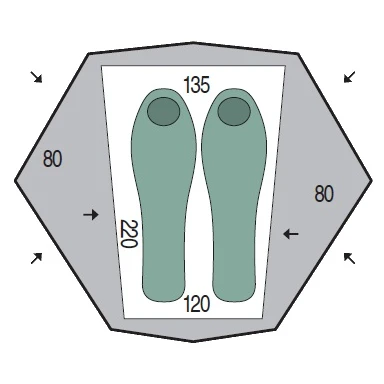 Das Zelt ist doppelwandig und besteht aus einem Innenzelt und einer Außenhülle – einem Überzelt. Das Innenzelt hat eine trapezförmige Form mit zwei Eingängen an den längeren Seiten. Das Außenzelt verfügt über zwei Eingänge, mit zwei Apsiden, geeignet zB. zur Aufbewahrung von Gepäck oder zum Kochen. Für beide Eingänge können wir entscheiden, ob wir die linke oder rechte Hälfte des Eingangs öffnen, oder beides gleichzeitig. Wir nutzen die Auswahlmöglichkeit beispielsweise für: beim Kochen, wo wir uns ganz einfach den nötigen Windschatten verschaffen können. Das Vordach besteht aus Nylongewebe mit Ripstop-Beschichtung, das das Gewicht des Zelts reduziert, gleichzeitig aber die Festigkeit des Vordachs beibehält.