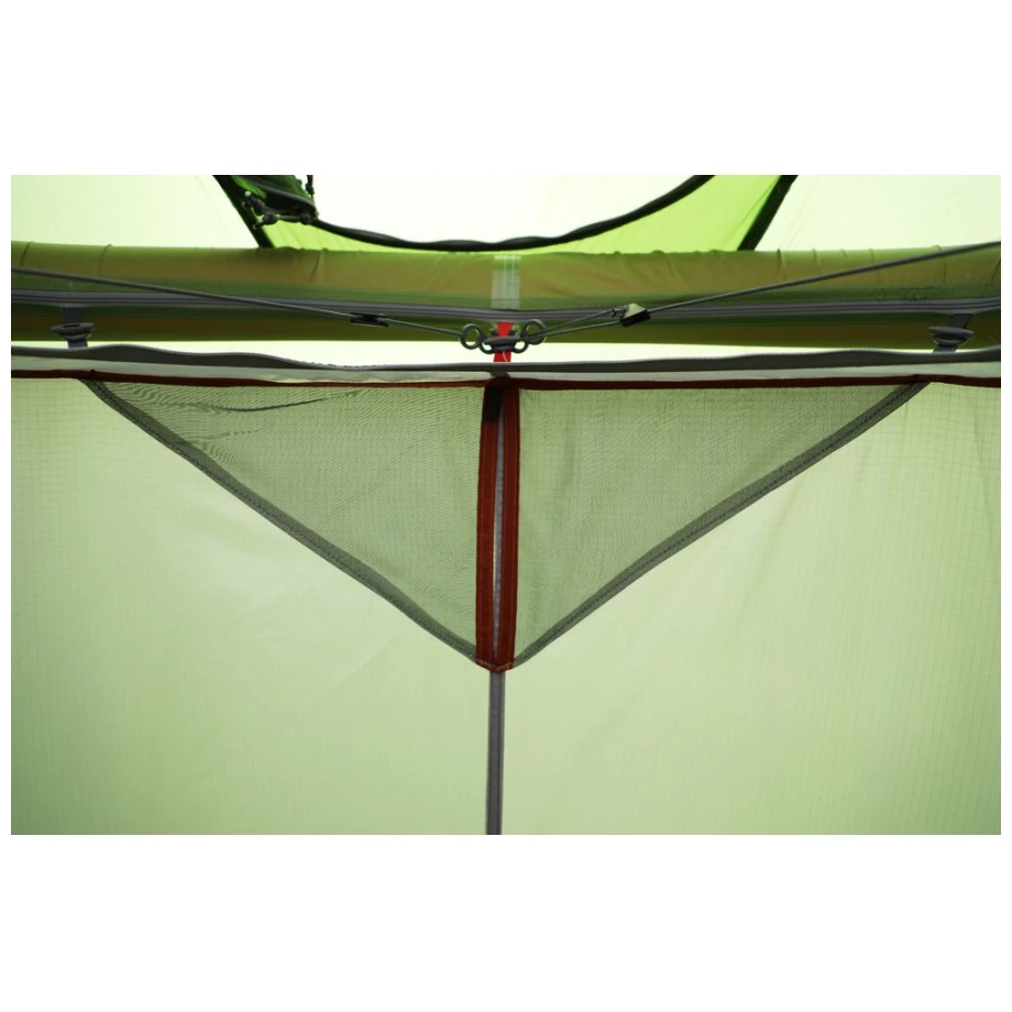 Kommen wir zu den weiteren Features, finden wir serienmäßig eine Innentasche, ein Insektennetz, gut sichtbare Kordeln und auch ein neues Teil Dyneema Pegging Points, das als Erweiterung für eine mögliche Skiverankerung verstanden werden kann.