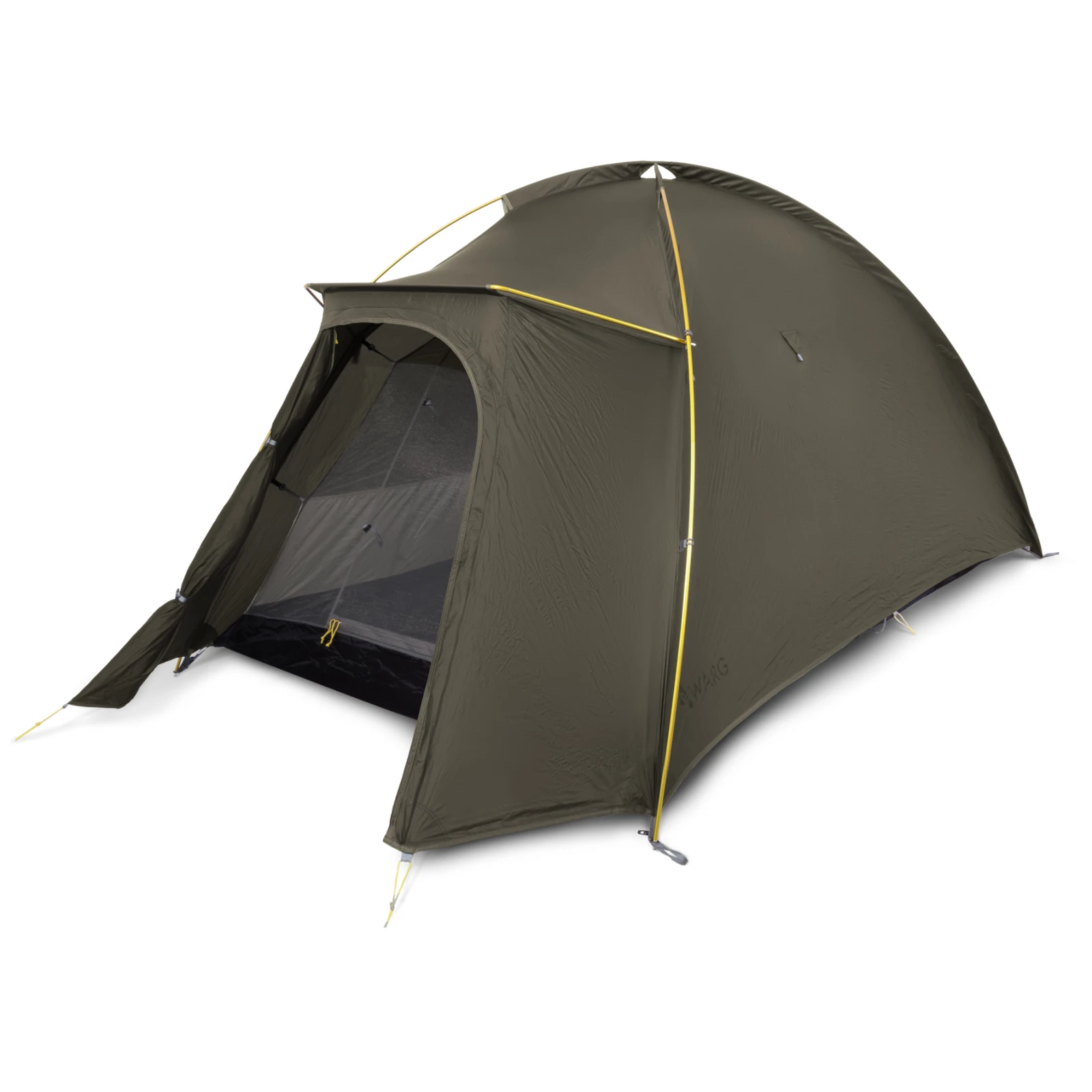 Das ultraleichte selbsttragende Zelt Warg Aura 2 Ultra verfügt über eine äußere Duraluminiumkonstruktion, die einen außergewöhnlich schnellen Aufbau auch durch eine Person ermöglicht. Die klassische Kuppelform wird durch eine einzelne Frontstange ergänzt, die ein Vordach mit vergrößertem Stauraum schafft.