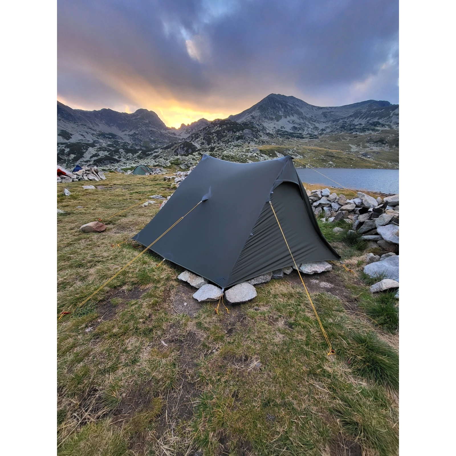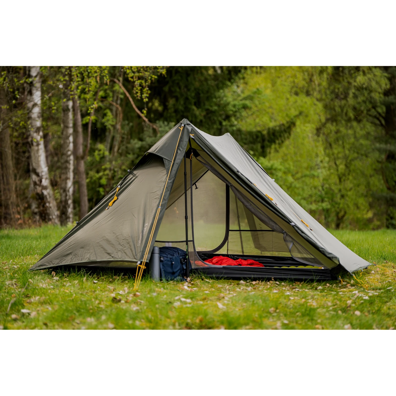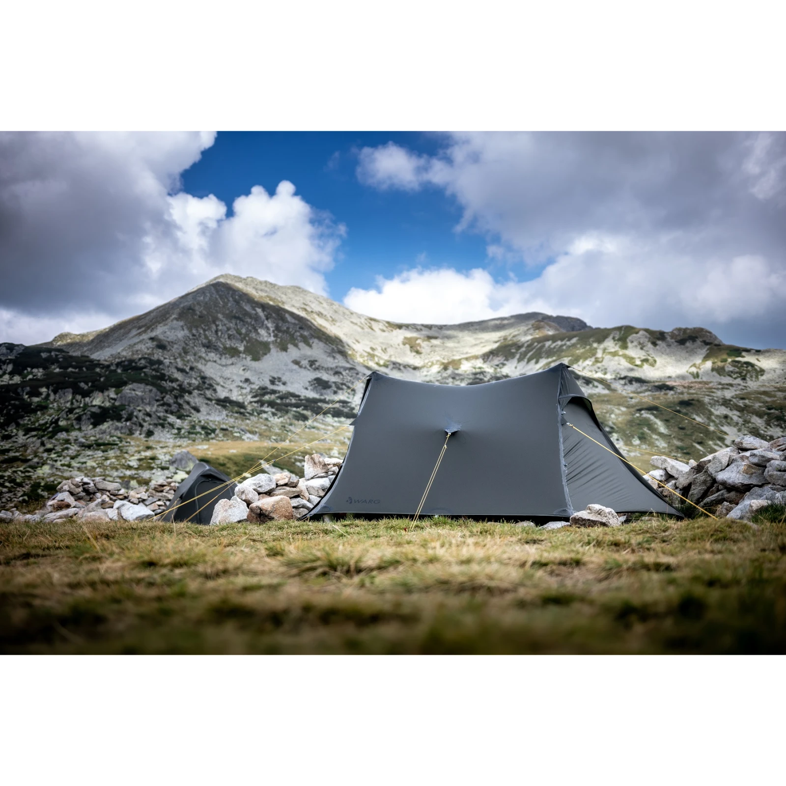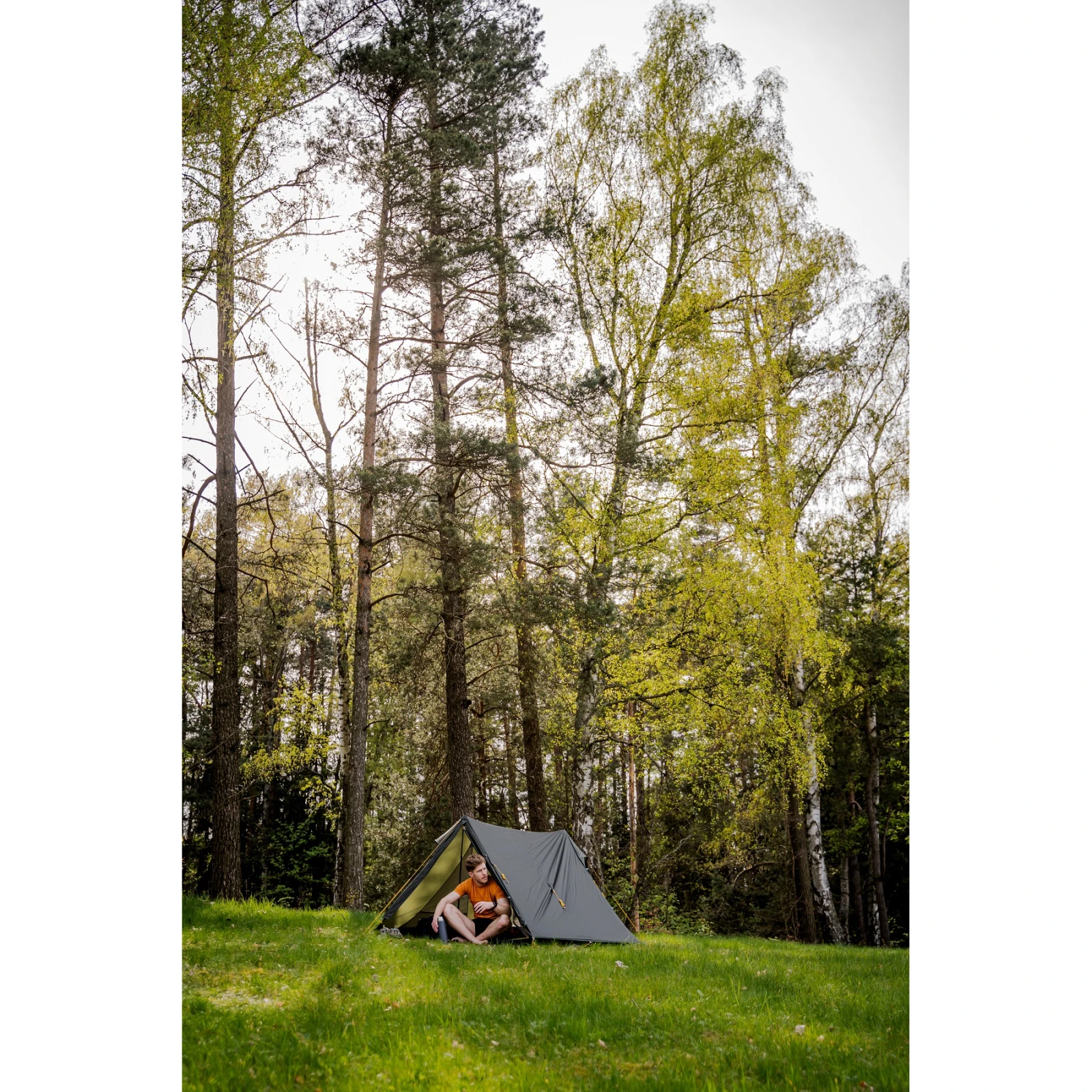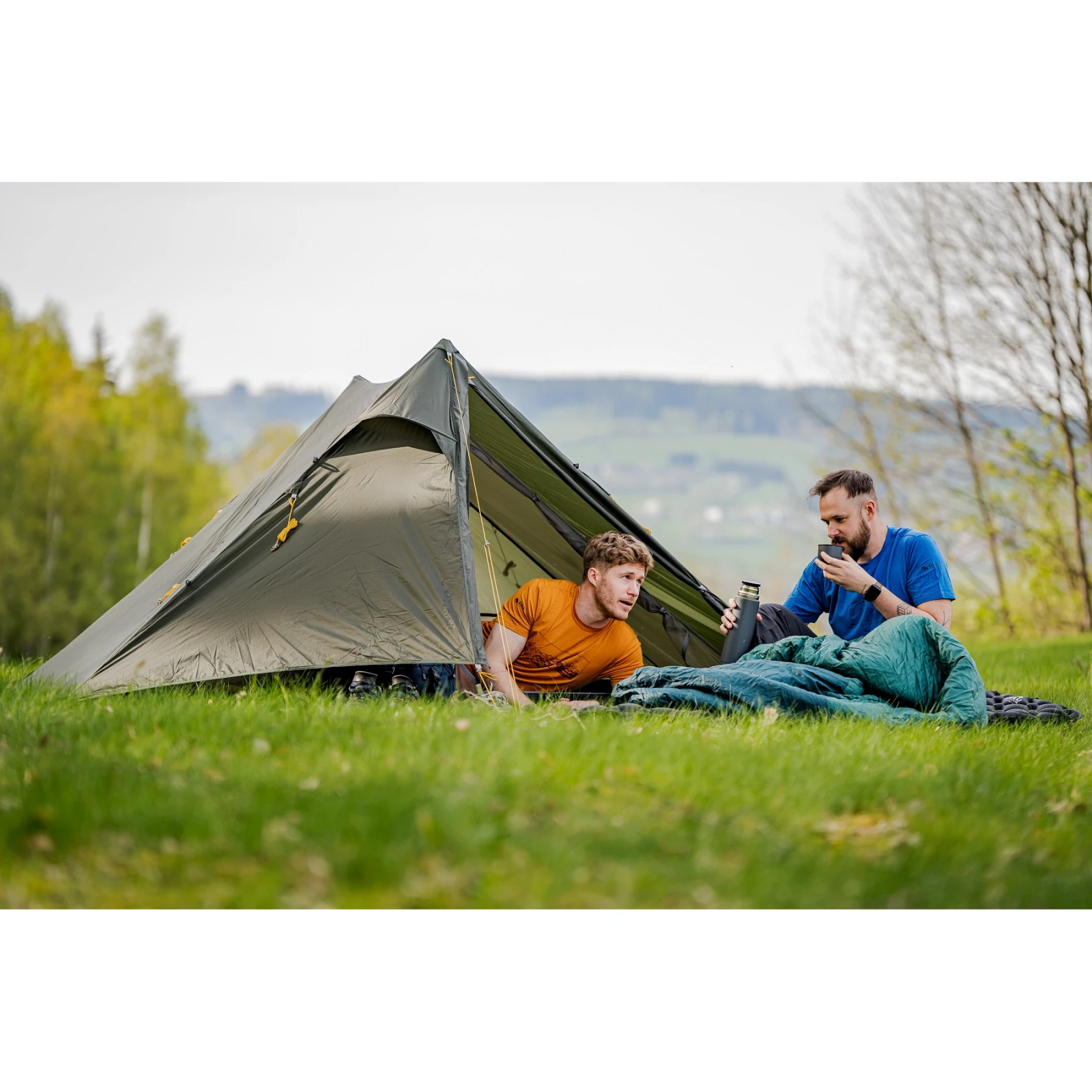 Warg Das Lightrek 2 ist eine wirklich ultraleichte Kombination aus Doppelwandzelt und Plane in minimalem Paket. Zum Aufstellen eines Zeltes benötigen Sie Wanderstöcke oder zwei Zeltstangen. Der große Vorteil eines Zeltes ist seine Variabilität. Sie können entweder nur das Überzelt oder nur das Moskitonetz aufstellen oder beide Komponenten verwenden und so ein komplettes Doppelwandzelt haben.