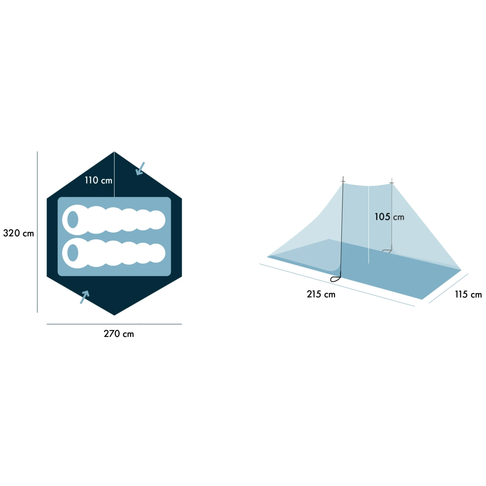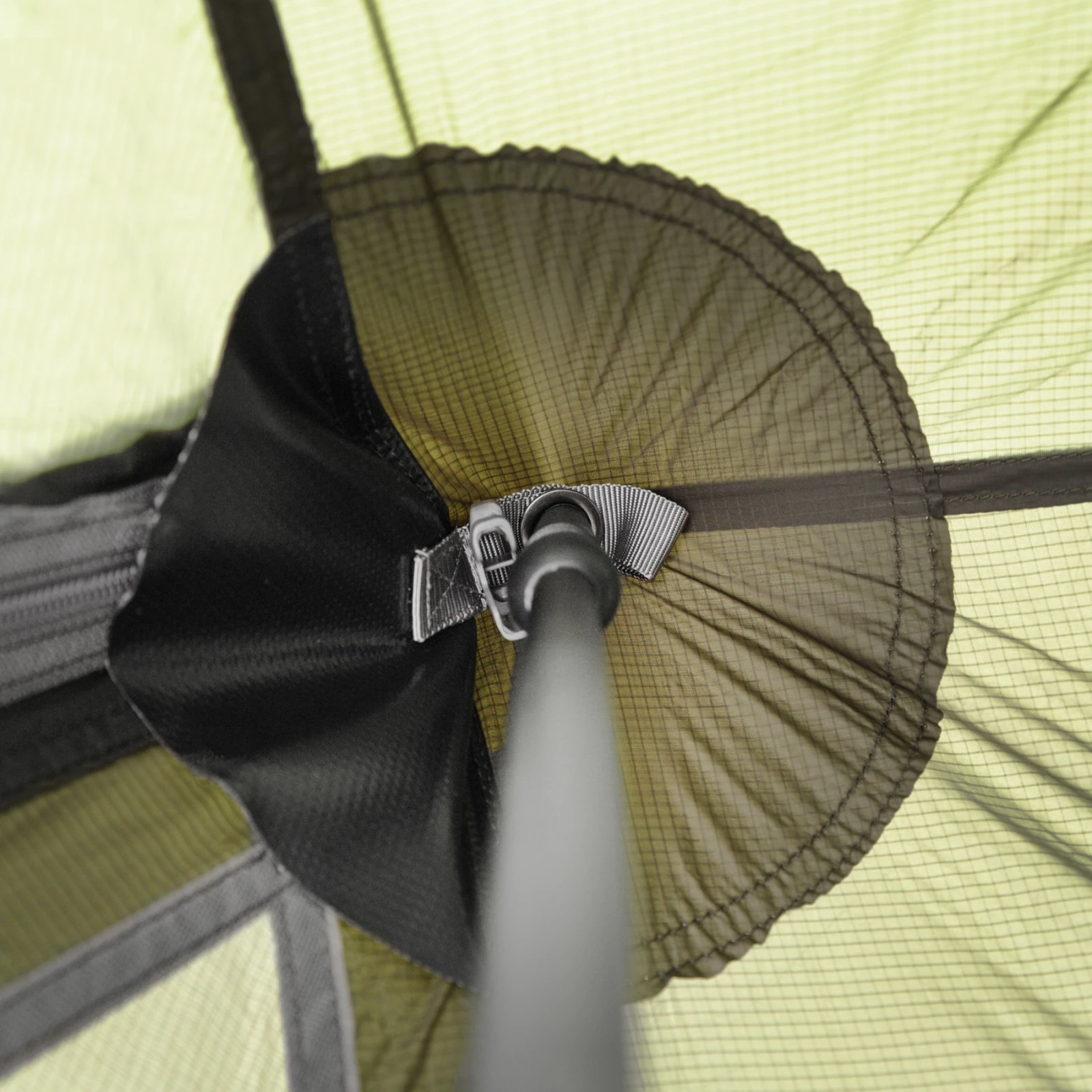 - Material Außenzelt: 20D Nylon Ripstop, beidseitige Silikonbeschichtung, 3.000 mm H2O