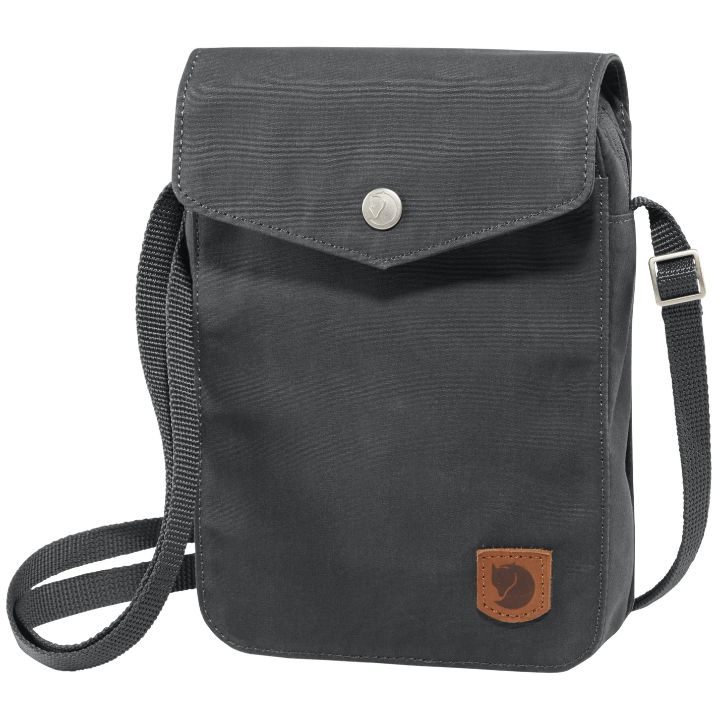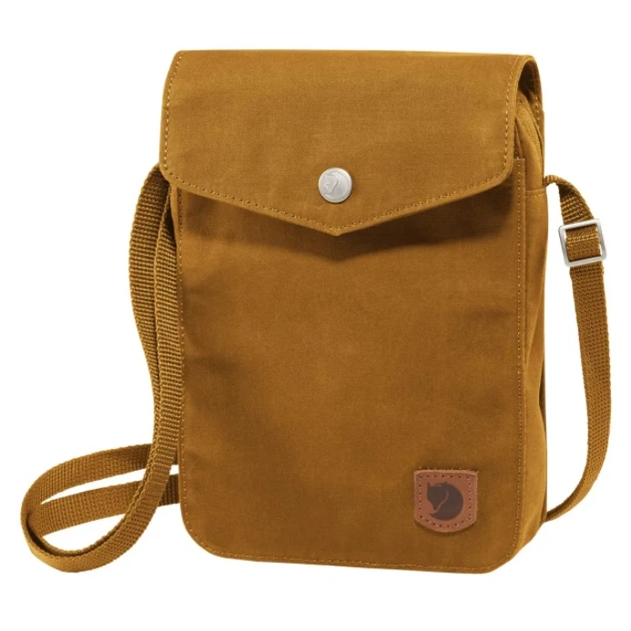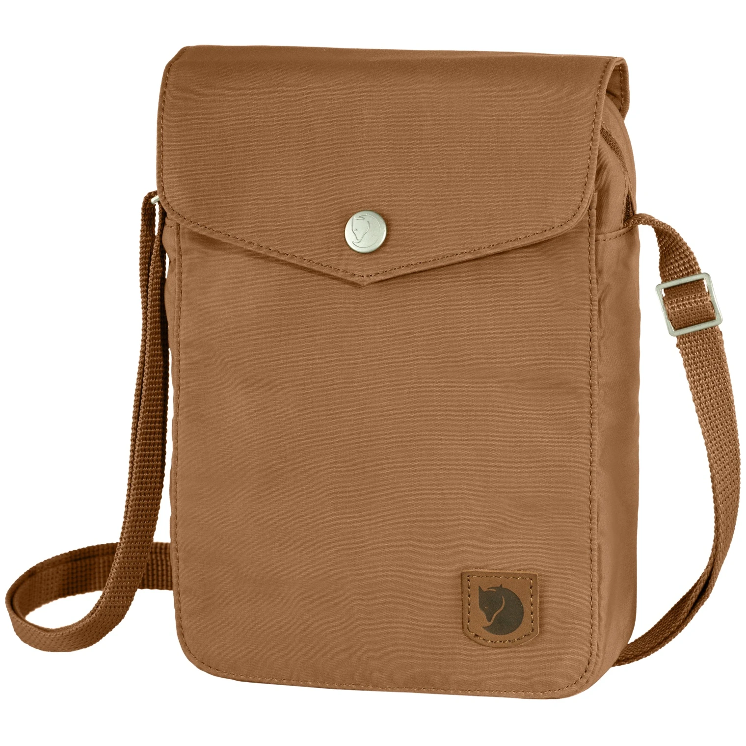 Die Greenland Pocket Umhängetasche von Fjällräven besteht aus strapazierfähigem G 1000 Heavy Duty Eco-Material, das recycelt wird. Die Tasche verfügt über einen leicht verstellbaren Tragegurt, einen Klappdeckel mit Druckknopf und ein Fach für Dokumente. Es gibt ein Hauptfach mit Reißverschluss und einem kleinen Tablet-Fach, einen internen Organizer für mehr Übersicht, ein Handyfach und eine Außentasche mit Reißverschluss zur Aufbewahrung kleiner Gegenstände.
