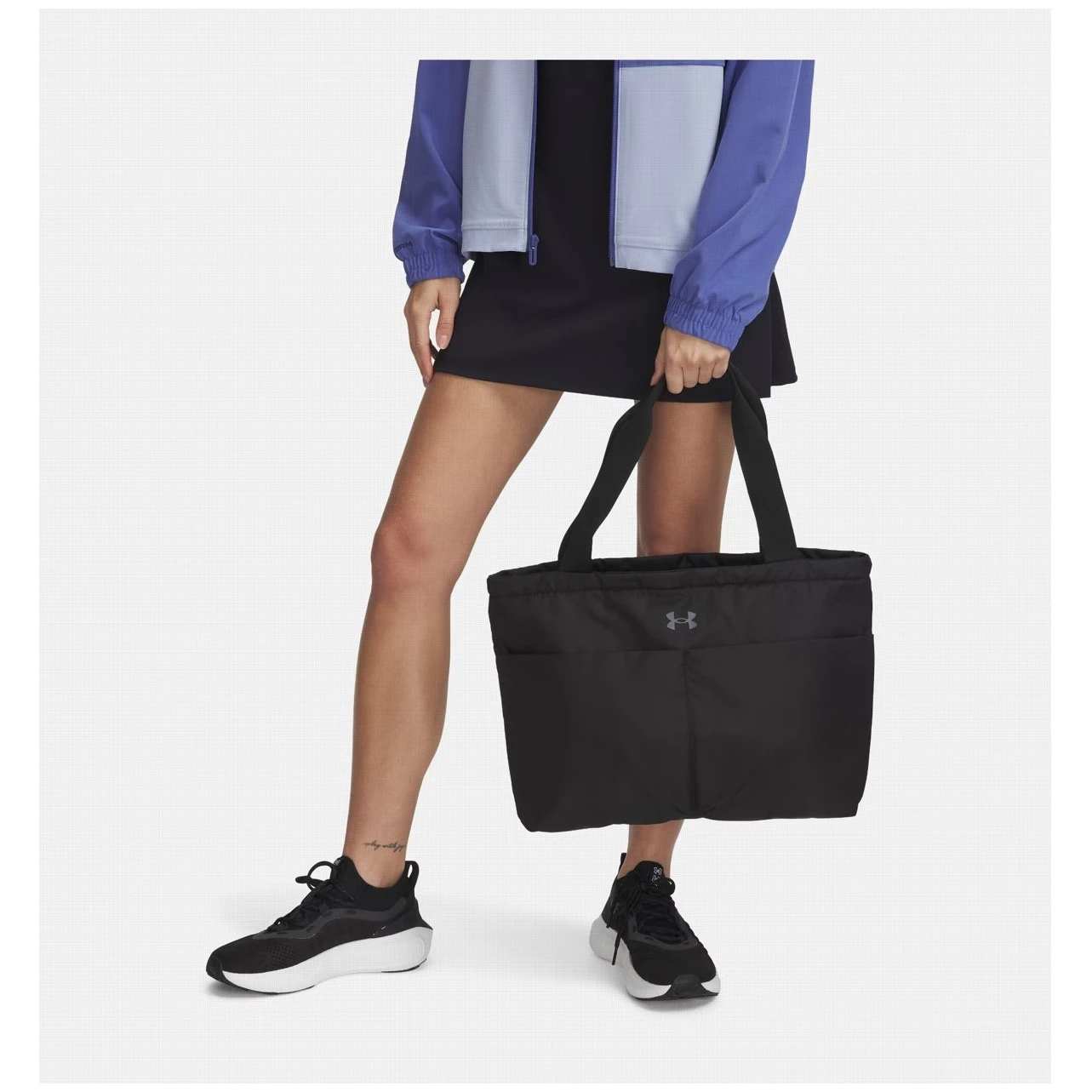 Studio Lite Tote Bag für Damen der Marke Under Armour mit großem Hauptfach mit Reißverschluss und Inneneinteilung und gepolstertem Handyfach – bietet Platz für bis zu einem iPhone 15 Pro Max oder ein Handy ähnlicher Größe. Praktische elastische Gurte, die Ihnen das Tragen Ihrer Yogamatte oder Schaumstoffrolle erleichtern. Reißverschluss mit Gummizugausgestattet, welcher zum Beispiel in den Haaren verwendet werden kann.