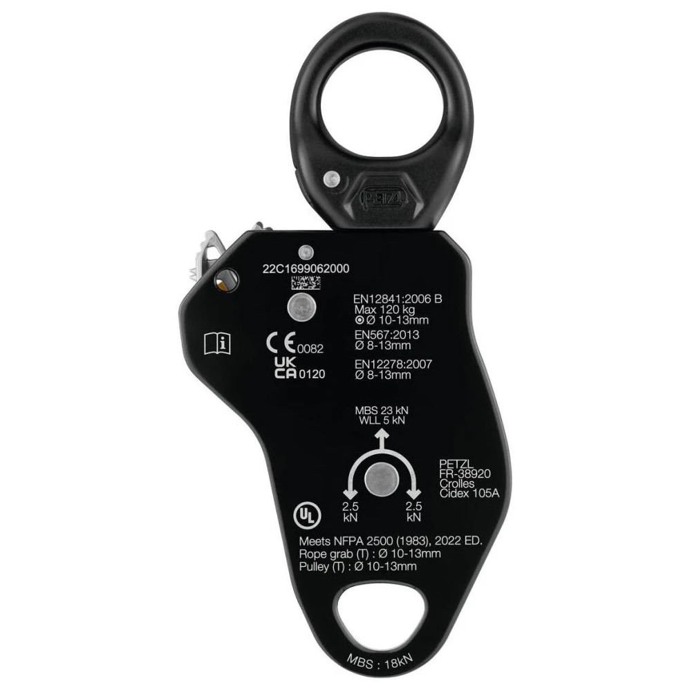 Die Umlenkrolle mit Blocker und drehbarem Haken Petzl Pro Traxion bietet hohe Effizienz und Widerstandsfähigkeit gegen Verlust durch Herabfallen. Die Pro Traxion Seilrolle lässt sich auch im an einem Ankerpunkt befestigten Zustand öffnen und ist für die Montage von Hebezeugen konzipiert. Dank der großen Scheibe, die auf geschlossenen Kugellagern gelagert ist, bietet sie hohe Effizienz und ist besonders geeignet für das Heben schwerer Lasten. Der Wirbel erleichtert die Handhabung, ermöglicht die Ausrichtung der belasteten Rolle und das direkte Einhängen von Karabinern, Seilen oder Schlaufen.