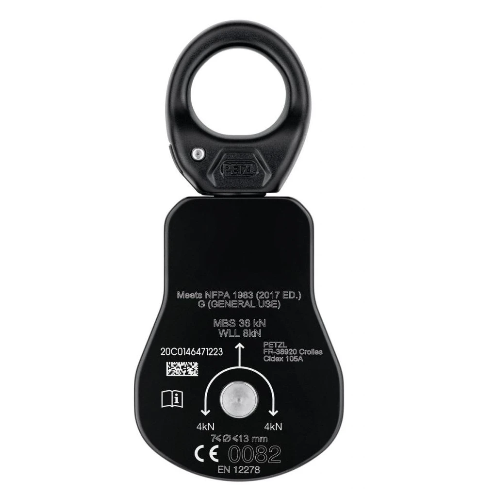 - Zertifizierungen: CE EN 12278, NFPA 1983 Riemenscheibe für den allgemeinen Gebrauch, UIAA.
